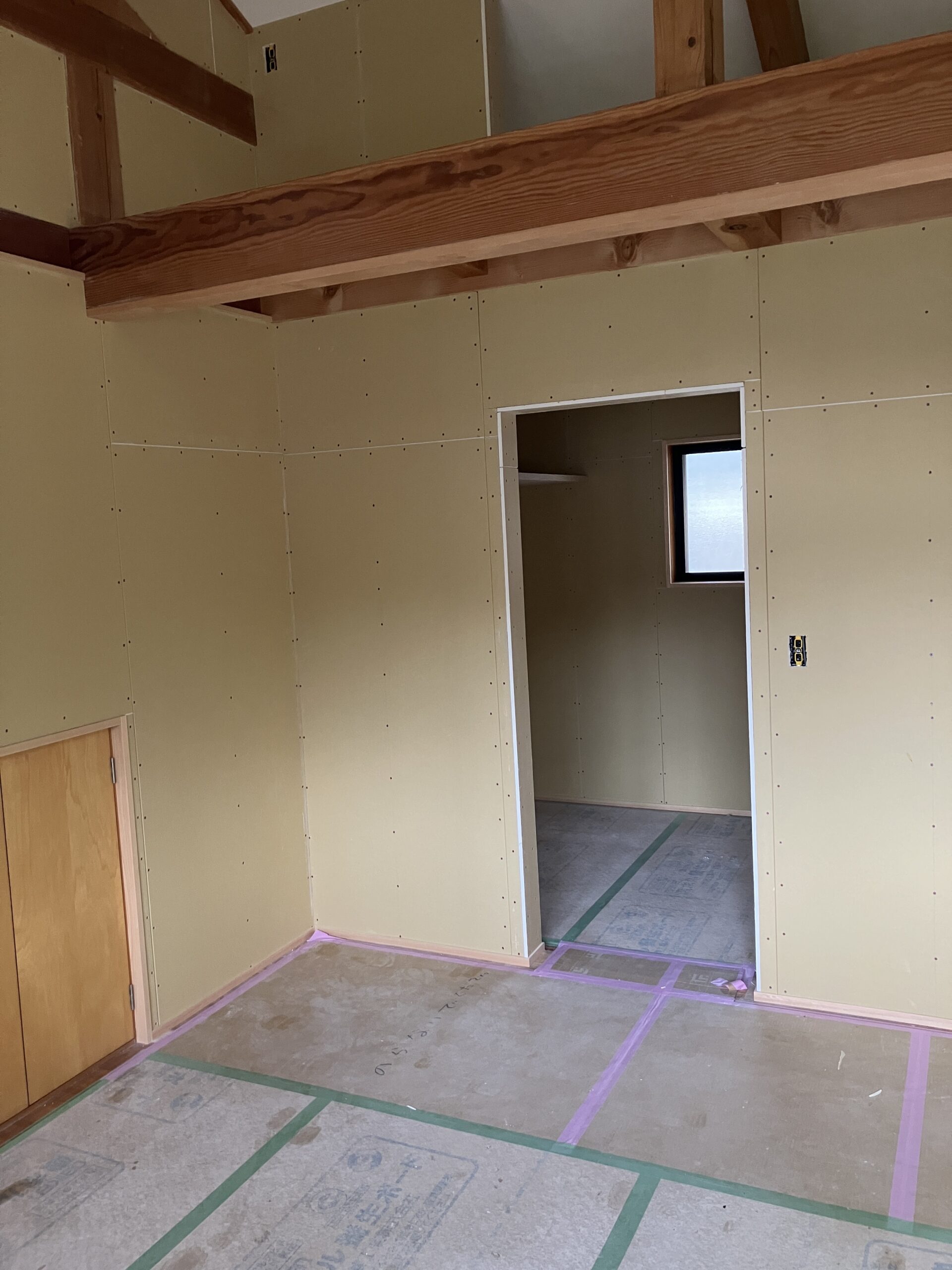 工事のゴミを落としたり、作業靴で歩いたりもするので、大事な作業です。