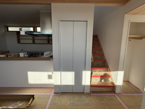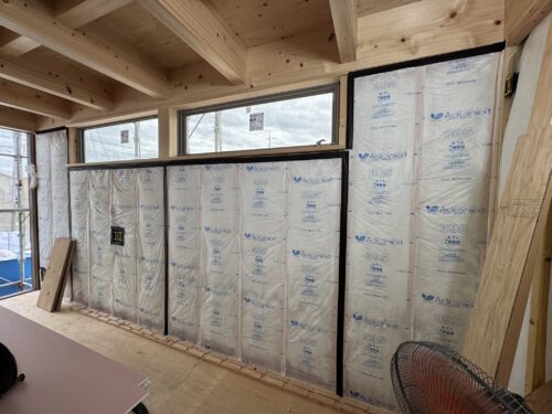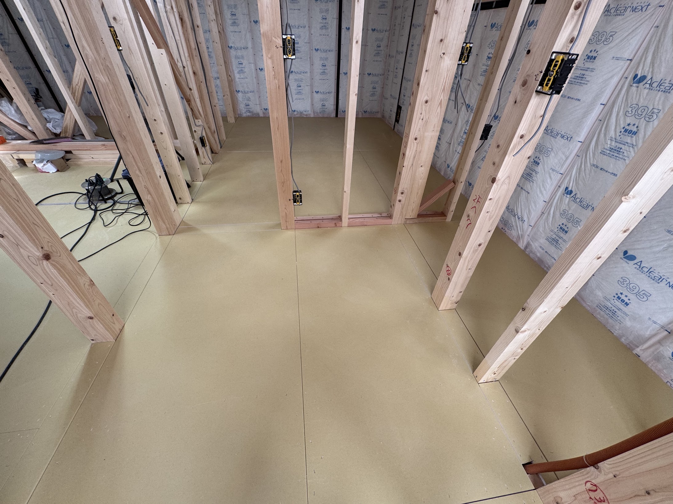断熱材の施工も完了して、床を貼るための準備にはいります。