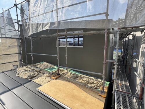 ノンクラック工法にてモルタルの塗り付作業の様子です。