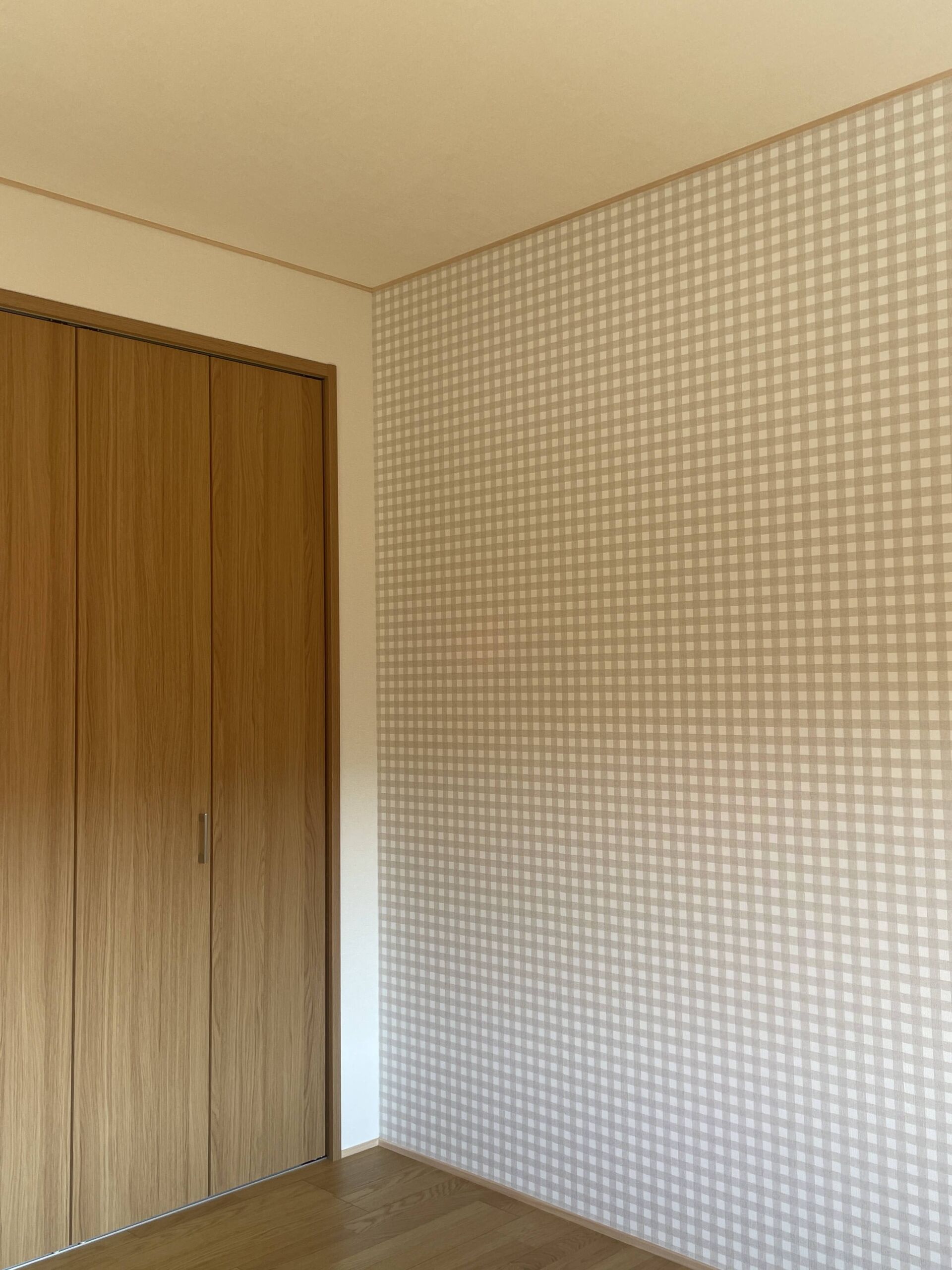 一部にかわいらしいチェックの壁紙を貼りました。テンション上がりますね!