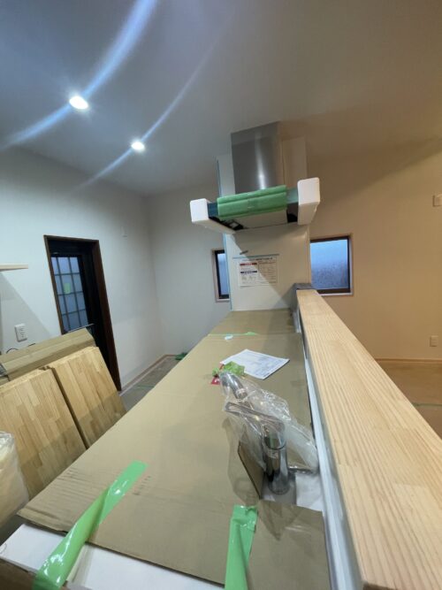 アイランド式オープンキッチンは開放的でいいのですが手元が丸見えになるという難点があります。丸見えになると常にきれいに片付けたいところですがこれから子育てに忙しくなるとなかなかそうもいかず(>_<)