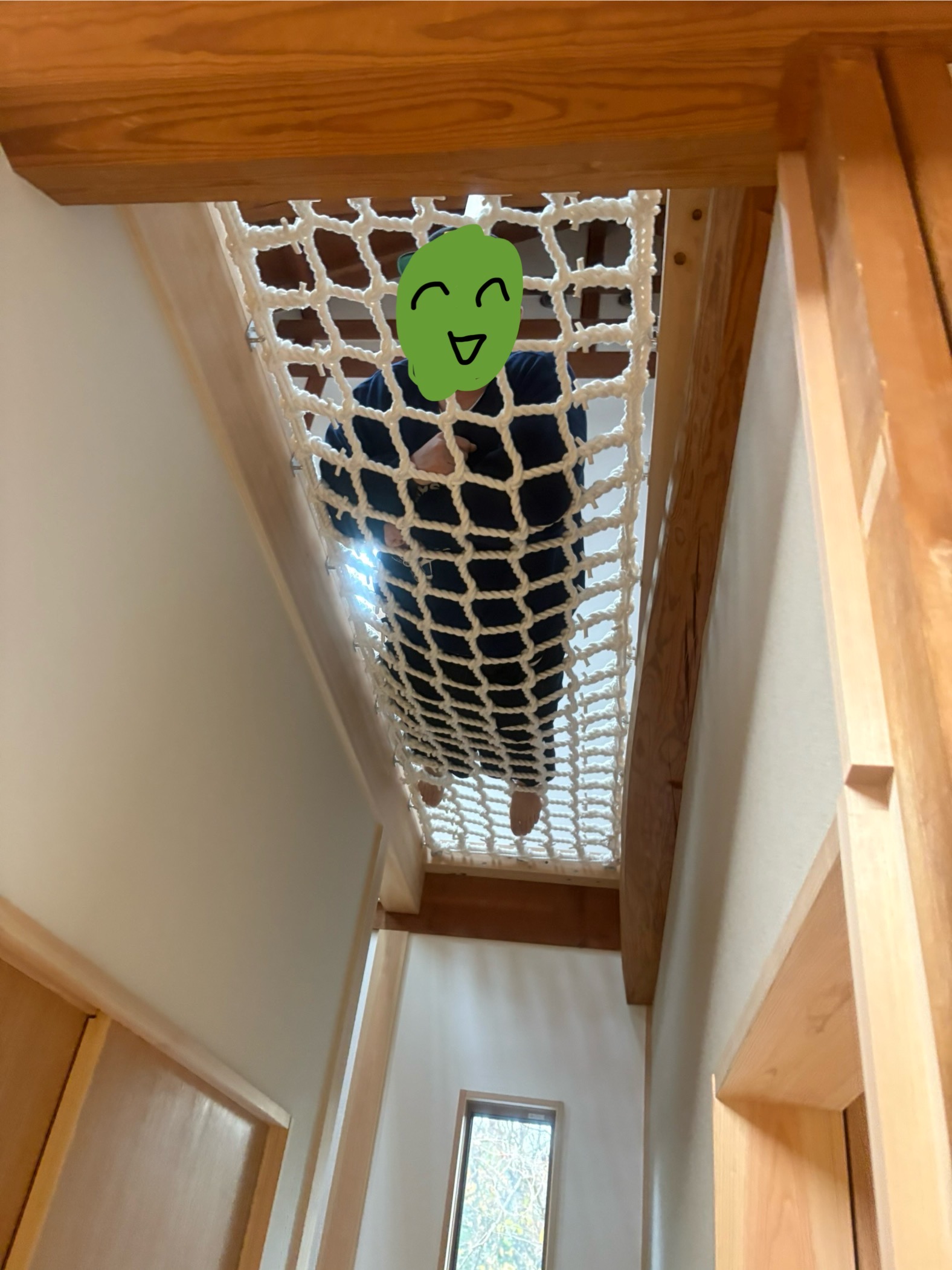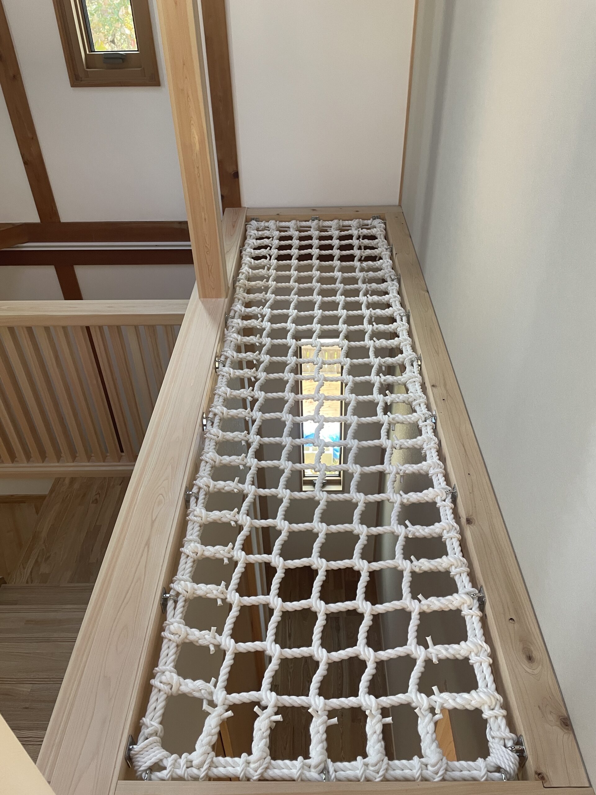 今は足場の板があるので高さは感じませんがここは階段横の吹抜部分。