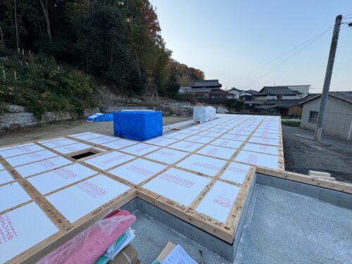 今日は、断熱材を敷いていきますよ。