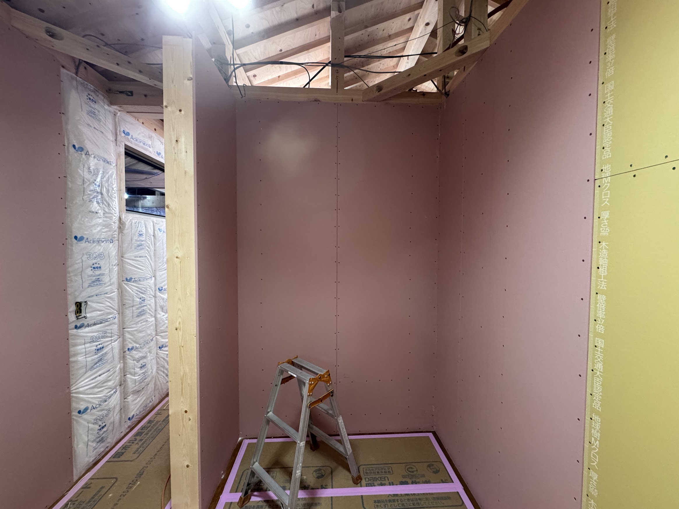 室内の壁下地をしています。