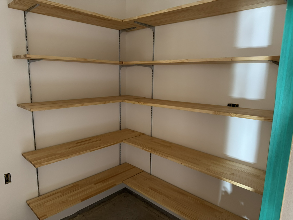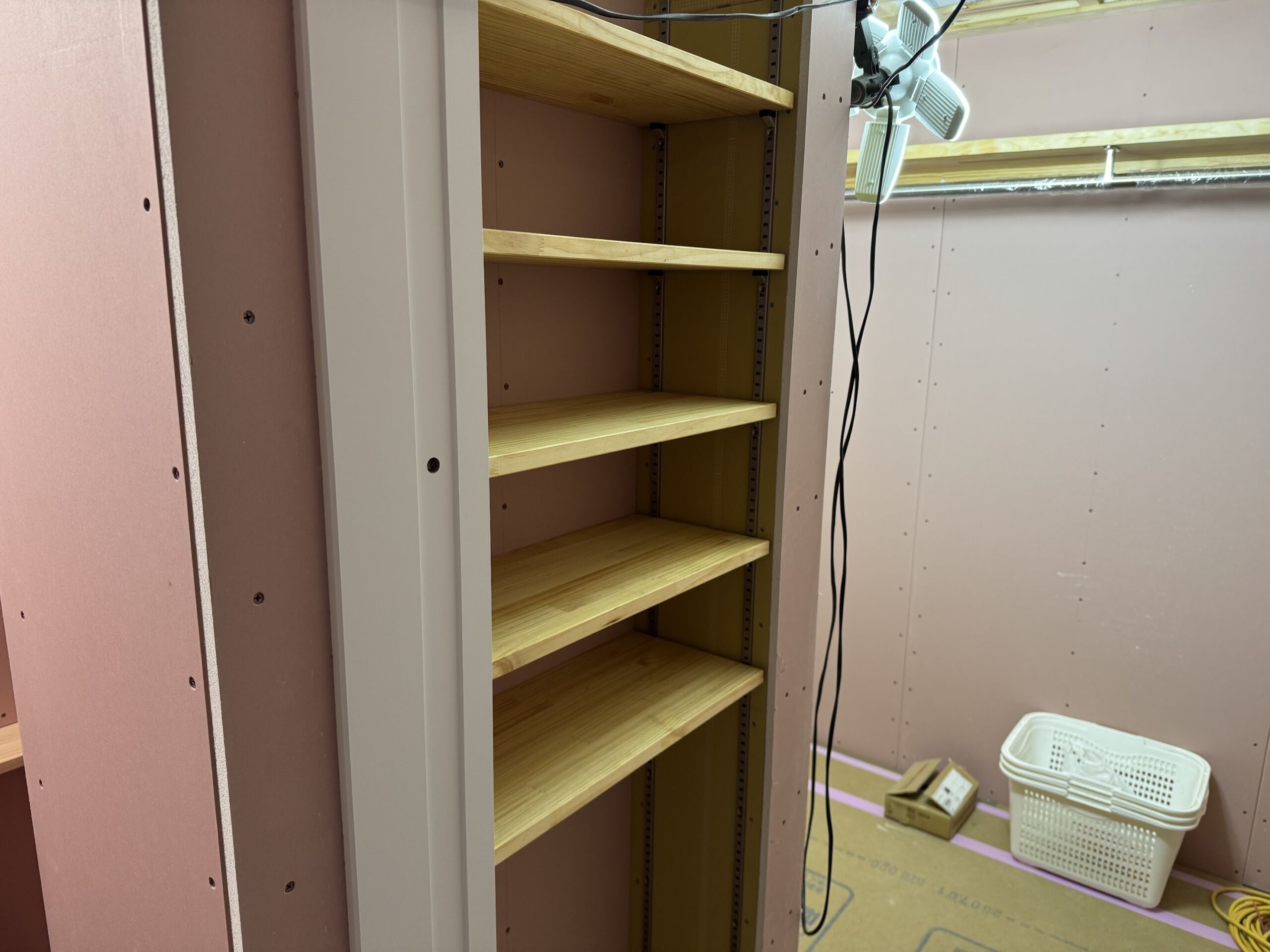 広々とした空間でも棚を設置できる『ロイヤルレール』を使用して5段の棚を取り付けました。