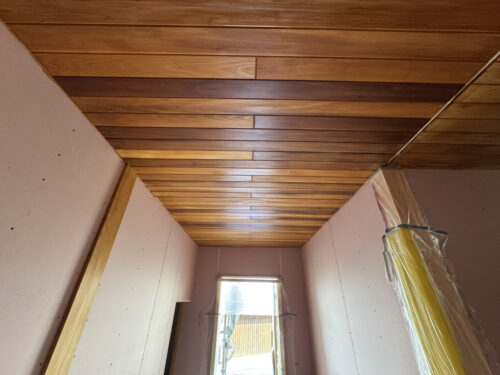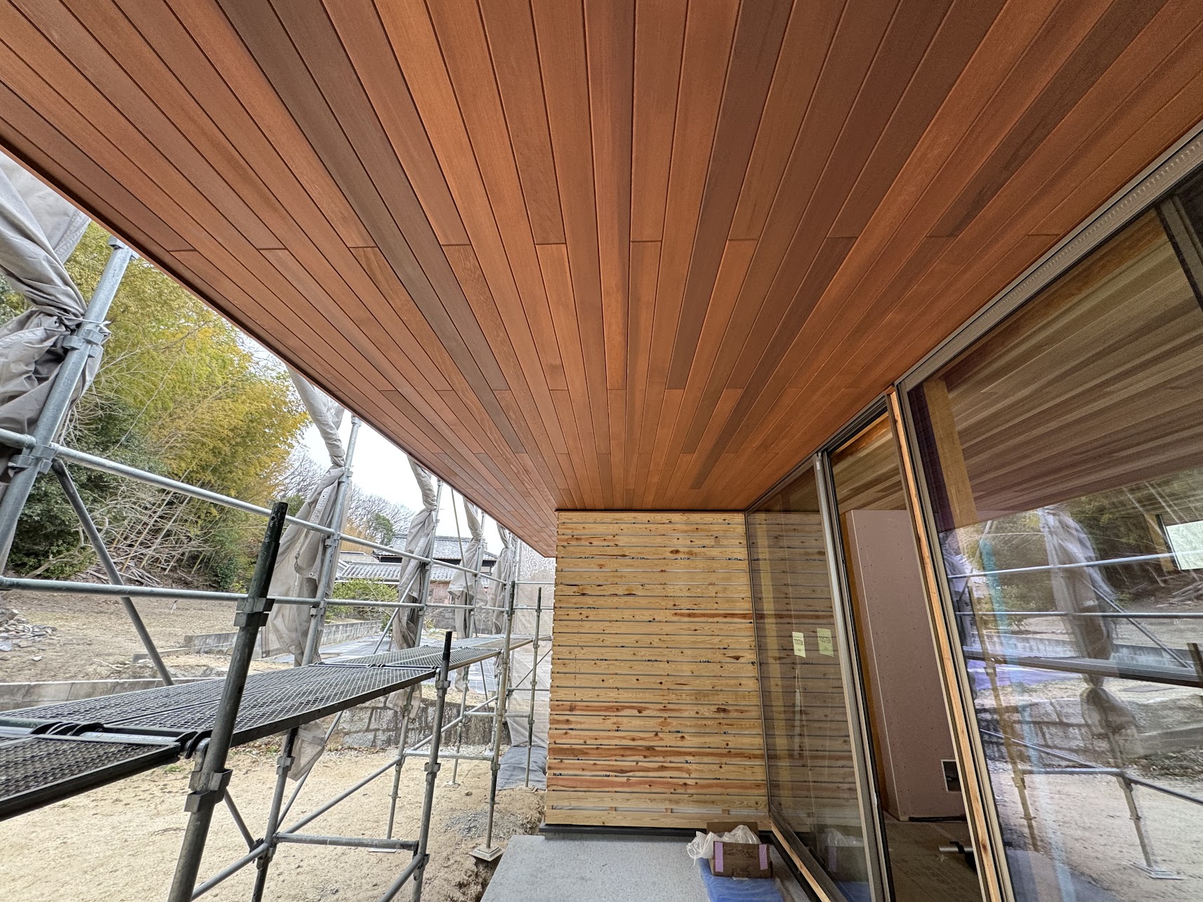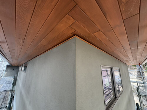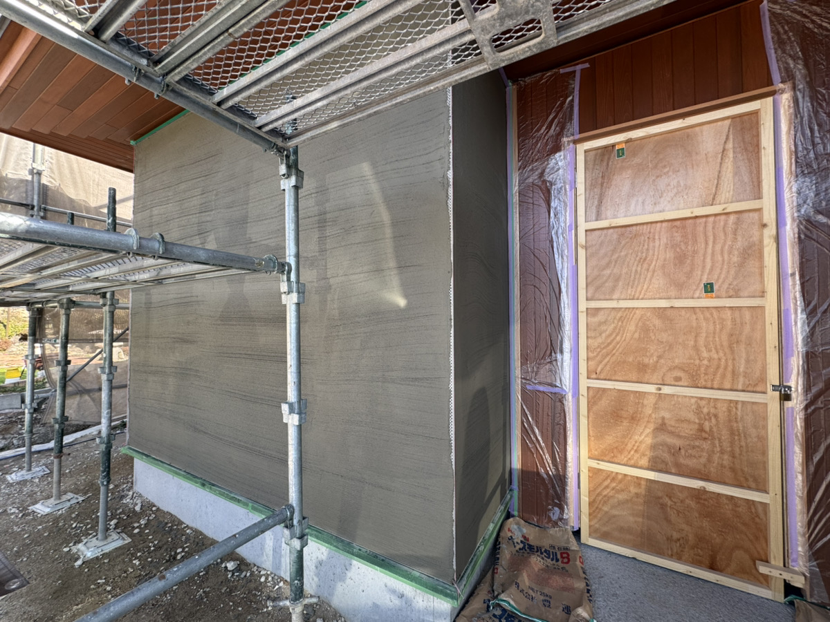 胴縁に木板をはってこの上に左官さんがモルタルを施工します。