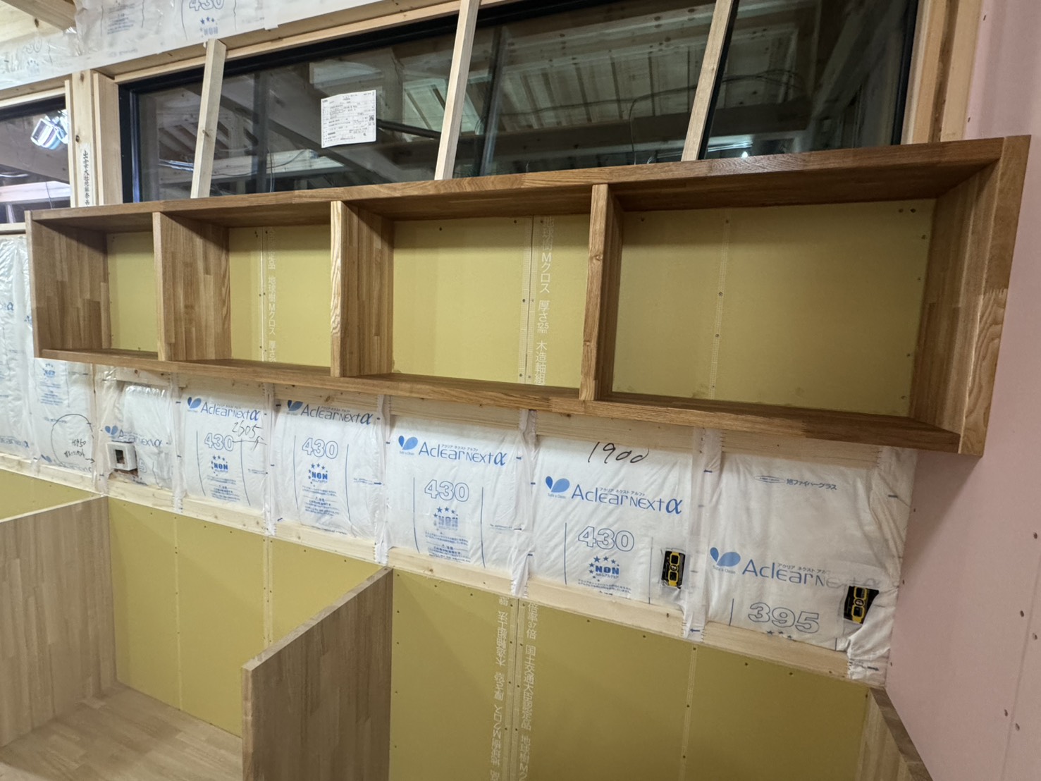 物の大きさによって高さを変更できるよう、可動式の棚を造作しました。