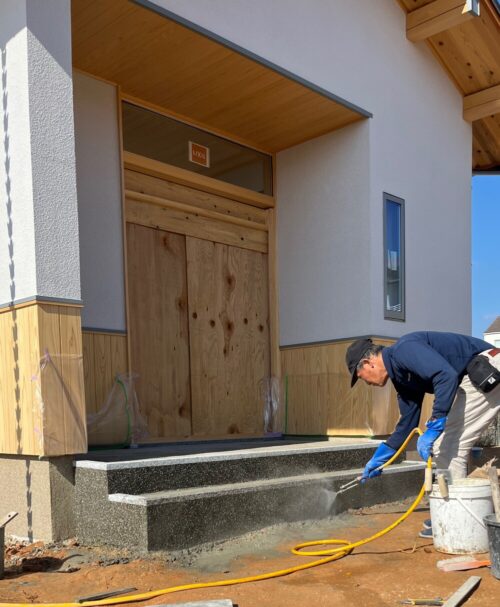 吹付が終わると足場が下り、外観の姿は鮮明に!