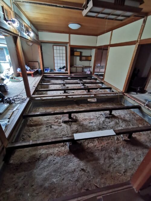 元々柱にかかっていた加重を両端部の柱に架け替えます。