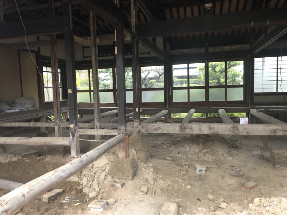 家上げが終わって基礎工事も終わったんで、これからどんどん柱の立を直したり、柱を入れ替えたりしていきます。