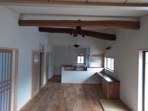 昔の間取りは玄関が広く収納少な目の良くあるものでした。