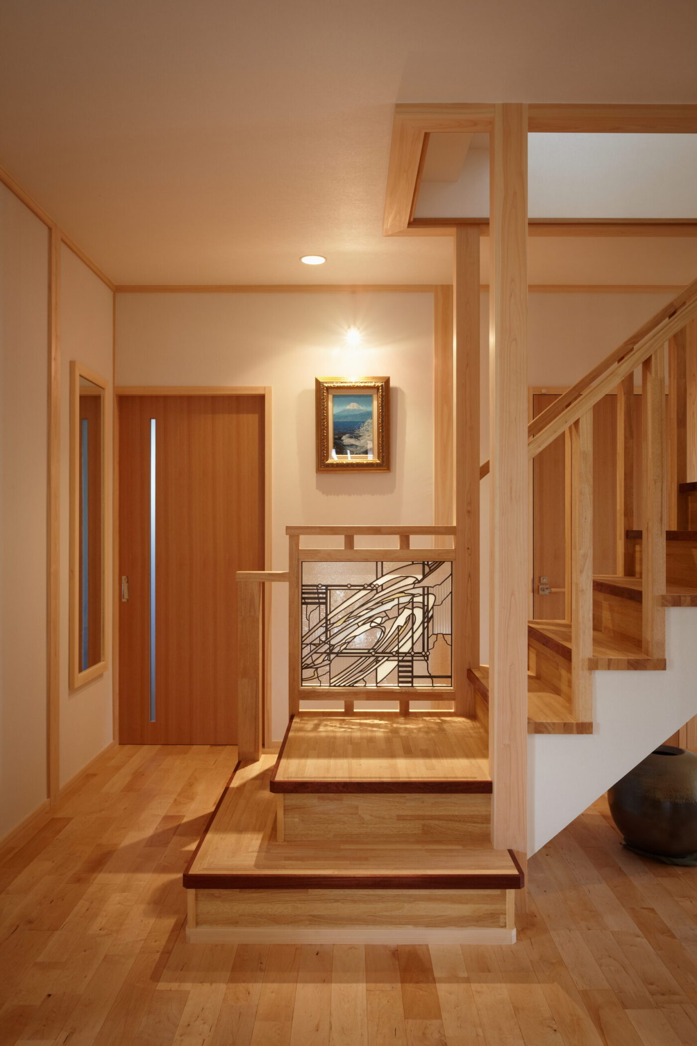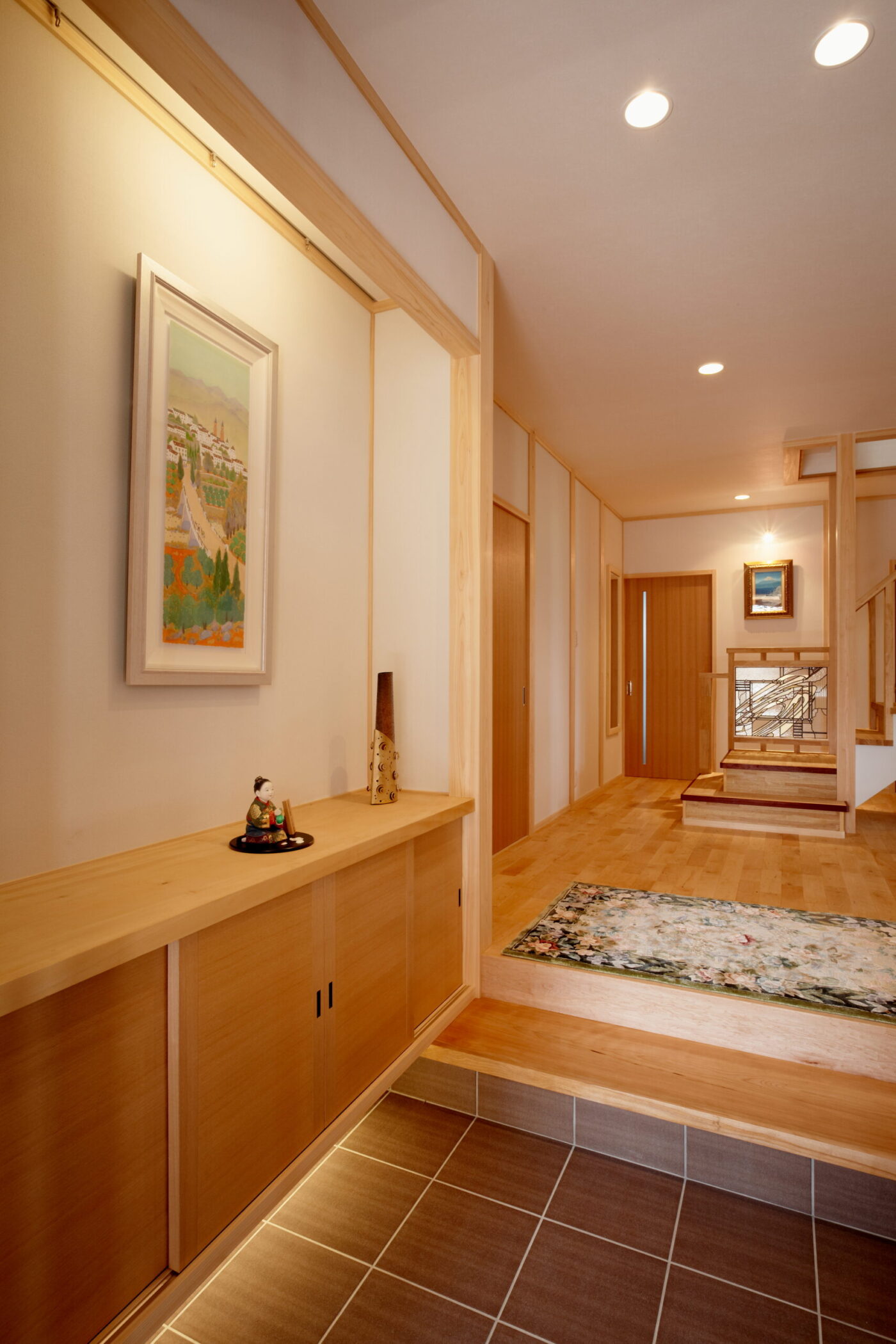 和風モダンテイストの二世帯住宅/真庭市 新築 #二世帯住宅#和モダン 田園風景を望む小高い丘の上に、和と洋が織り成す住宅です。 ステンドグラスを入れた建具や、木の格子、アイアンパーツなど、決して派手ではないけれど、シンプルだからこその空間に本物がもつ上質な雰囲気がより際立っています。 類似事例 丘の上の絶景カフェ兼住宅/瀬戸内市牛窓町 <商業建築> 4.2m 無垢カウンターダイニングの家/倉敷市 大黒柱でつながる おもてなし囲炉裏の家/岡山市中区 ルームツアー もっとみる