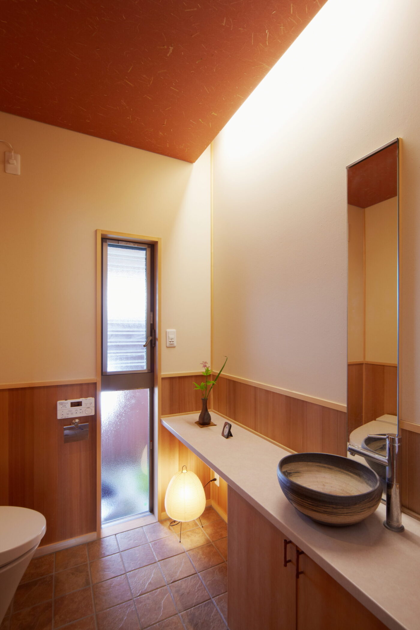 木の素材と和紙の色にこだわった、なんば建築工房らしさを残した和風モダン住宅です。