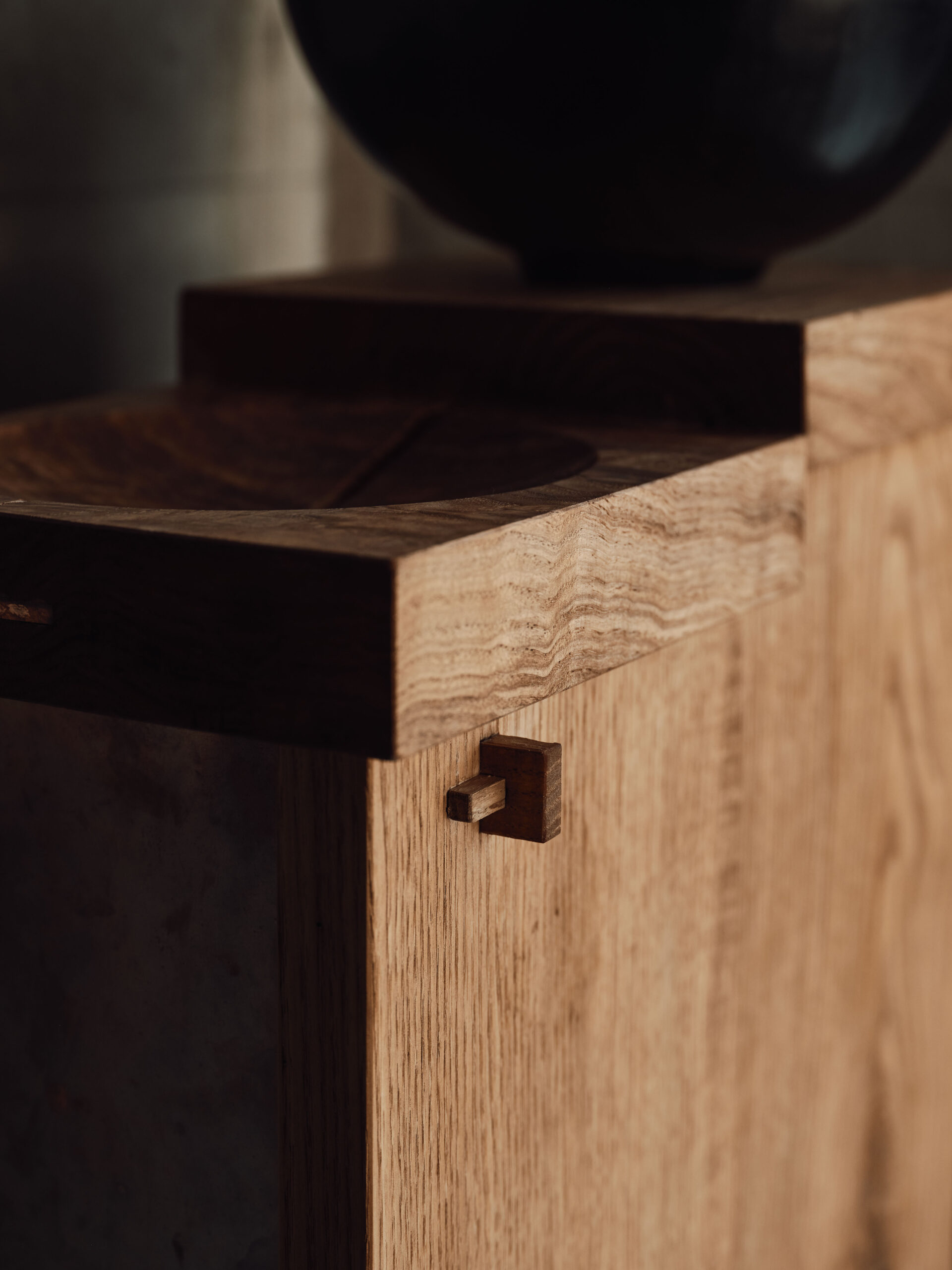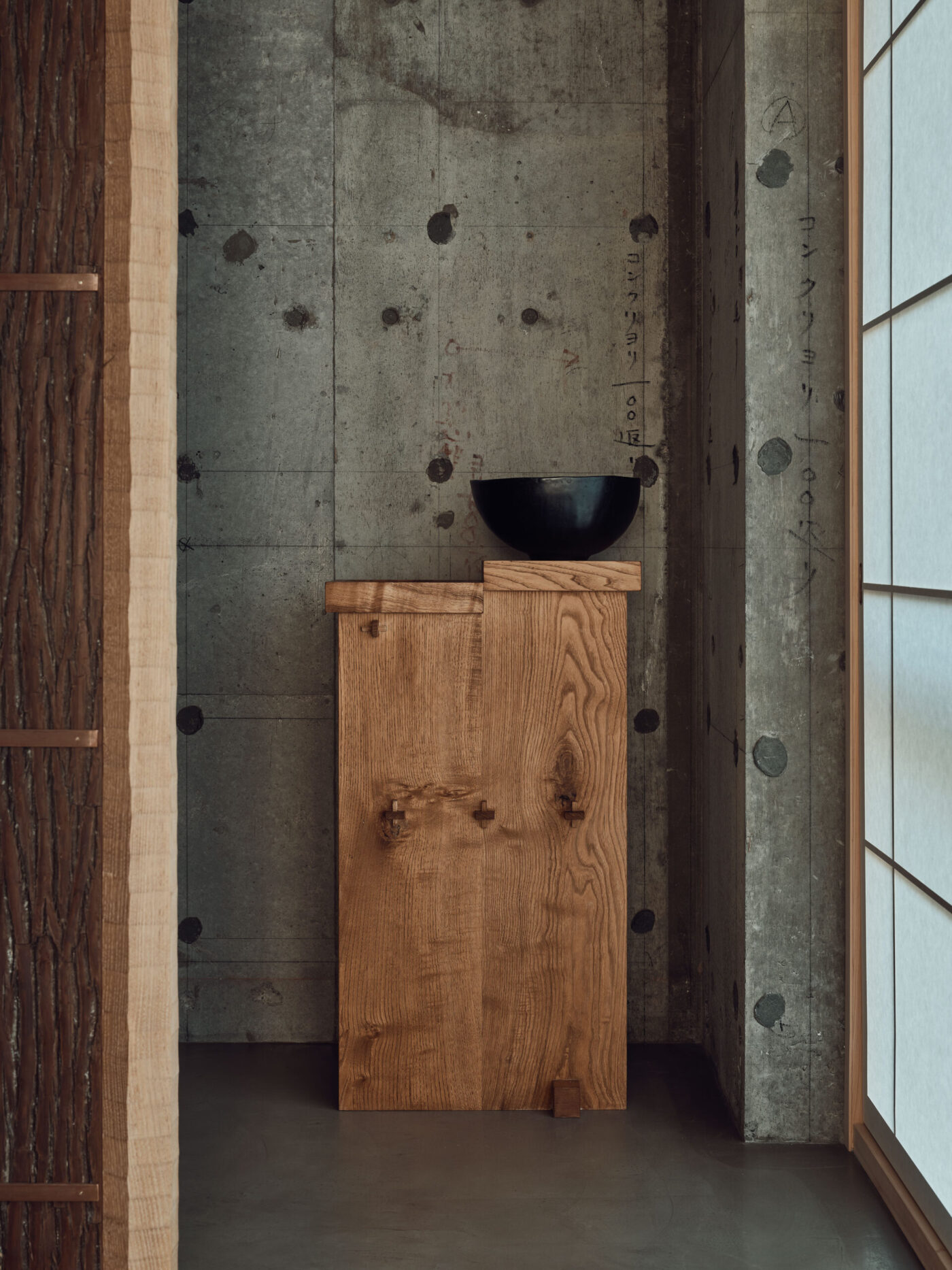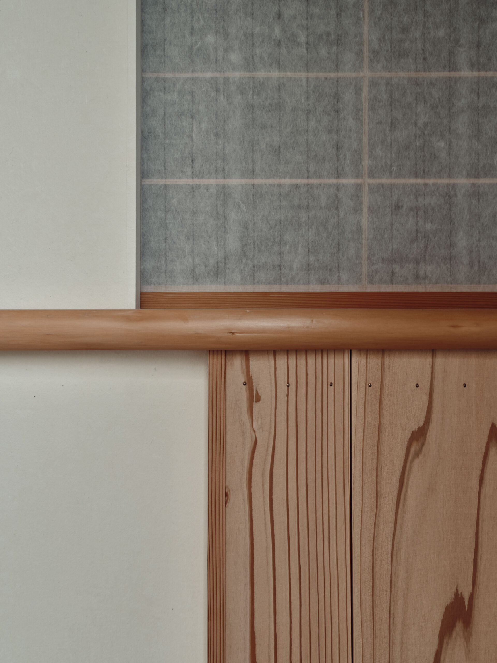 素材一つひとつの来歴や表情を見極めながら、二畳という最小限の空間に、奥行きと静けさを宿らせた。