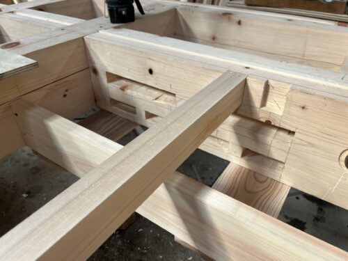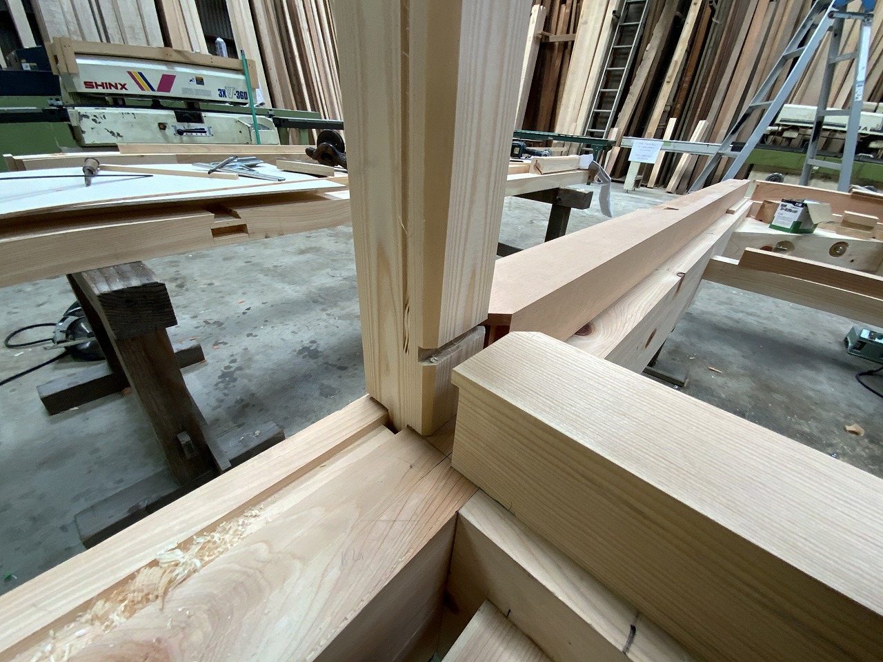 金具を用いず木組みで組み上げ、一度解体したうえで東京都の現場へと運び、再び丁寧に据え付けている。
