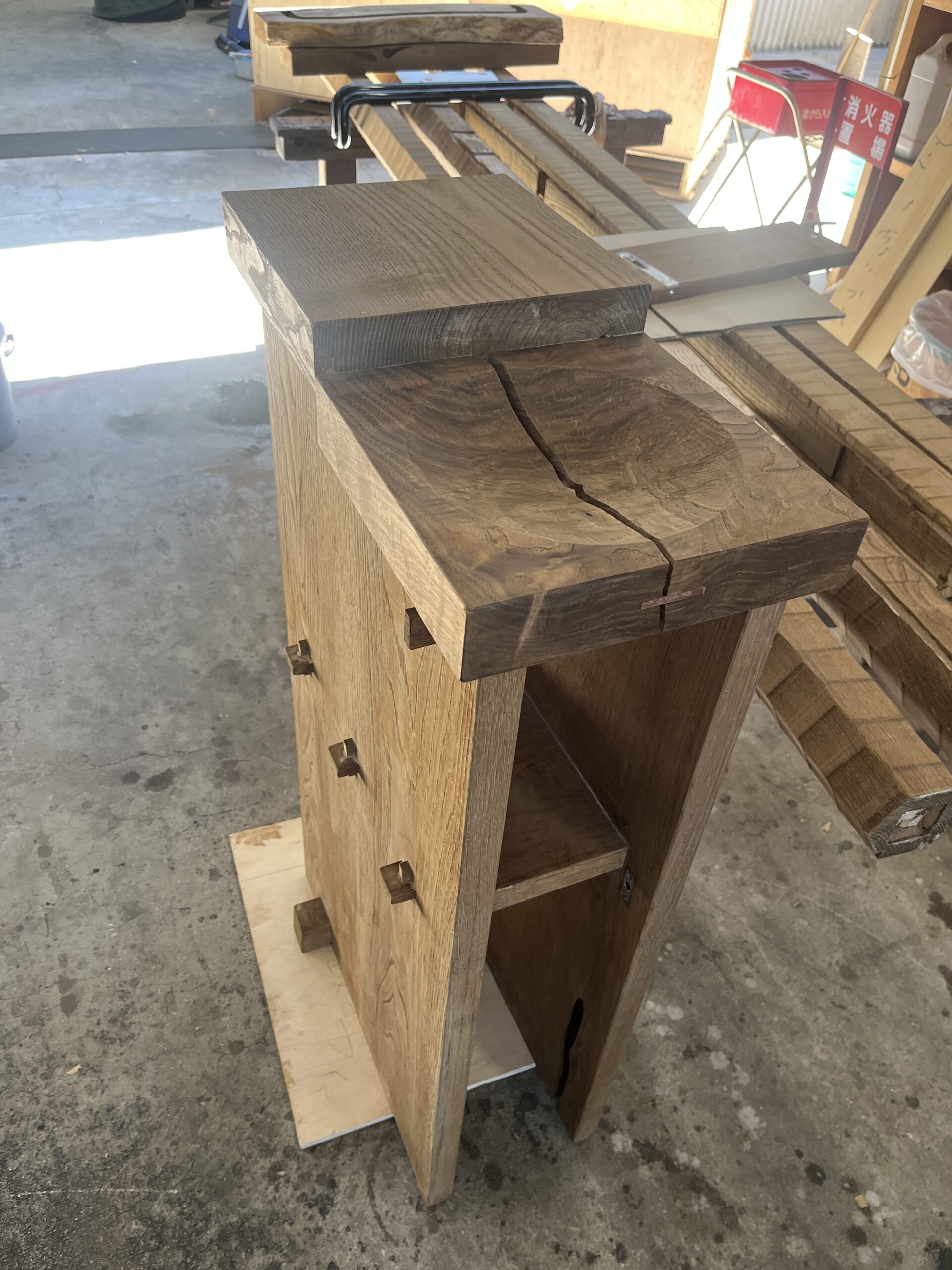 中板:神代杉(太古の杉が地中や水底に埋もれ、長い年月をかけて化石化する手前で発掘された、希少価値の高い木材)