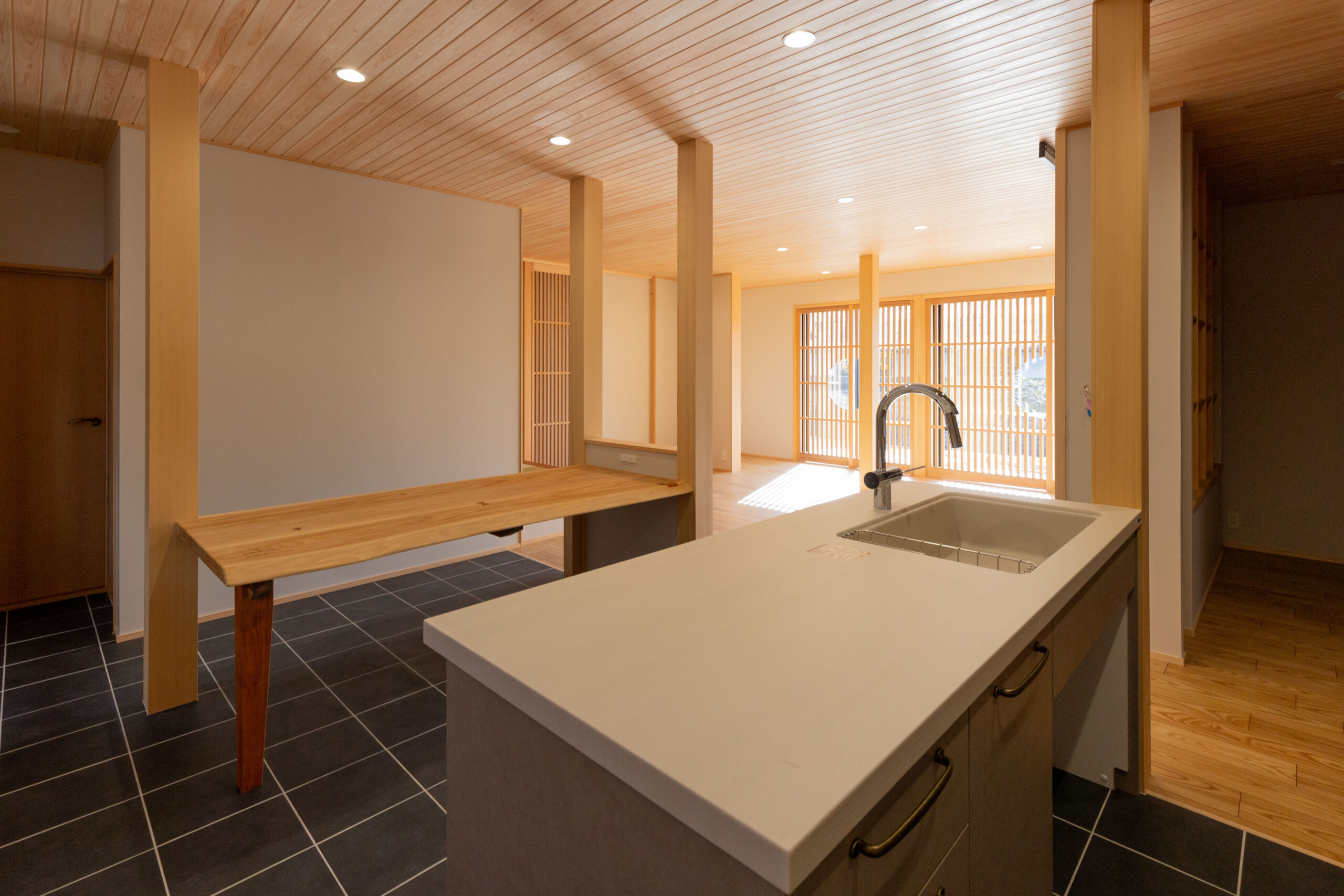 和室中心だった間取りを見直し、家族が自然と集まるLDKへと再構成。