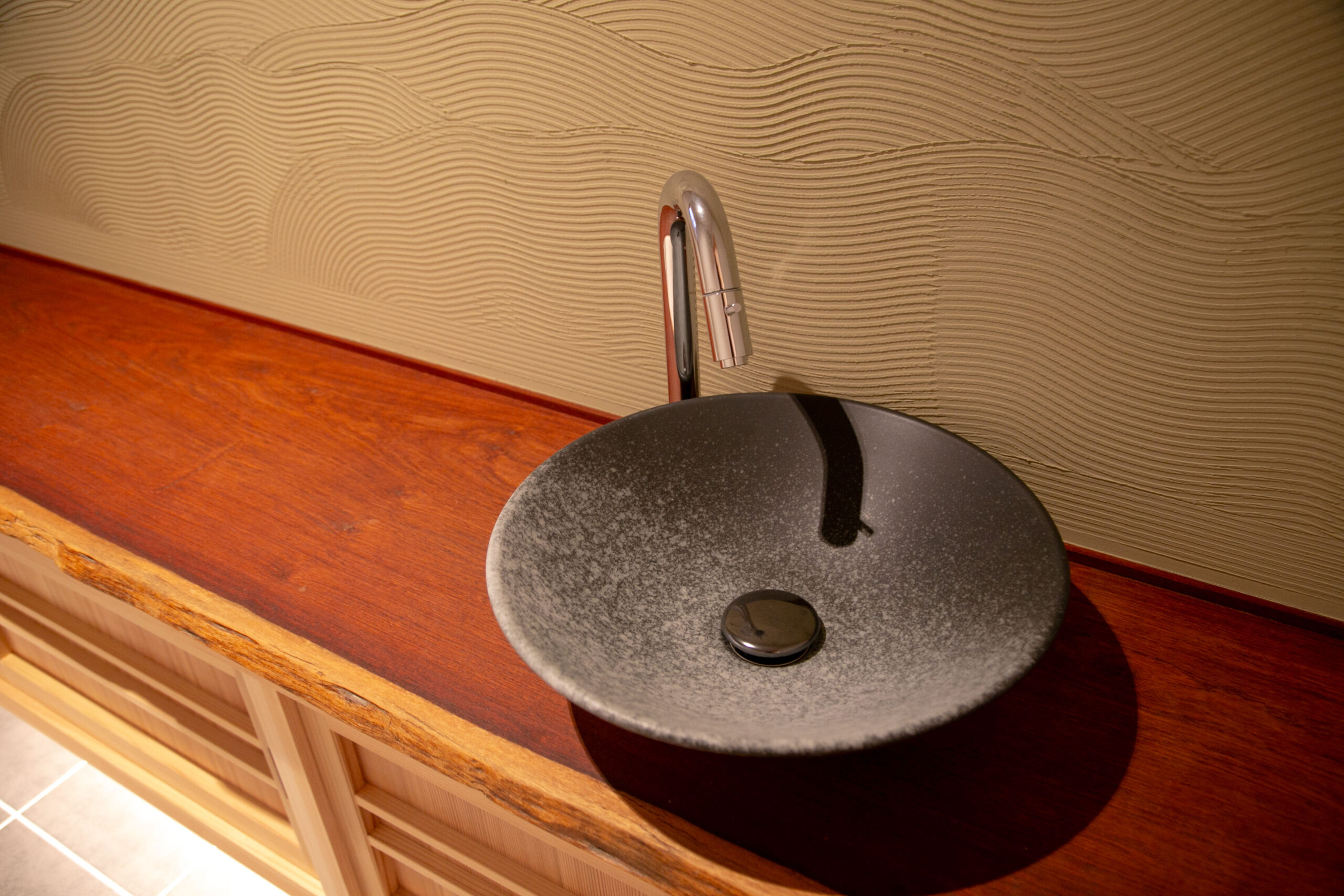 美しい赤みのある材が目を引く。