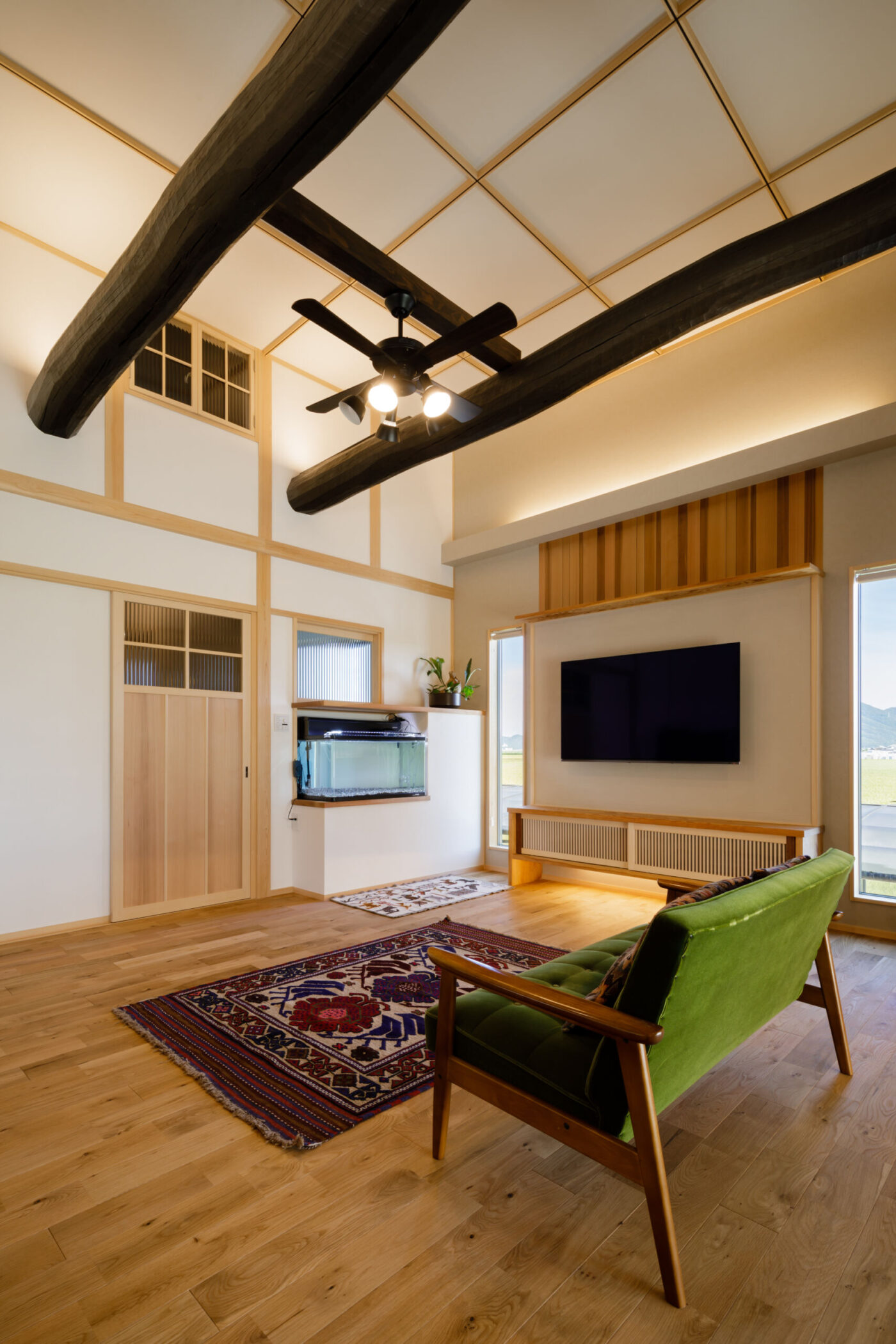 広々リビングの家具や装飾は全てご夫婦のチョイス。センスが光ります。