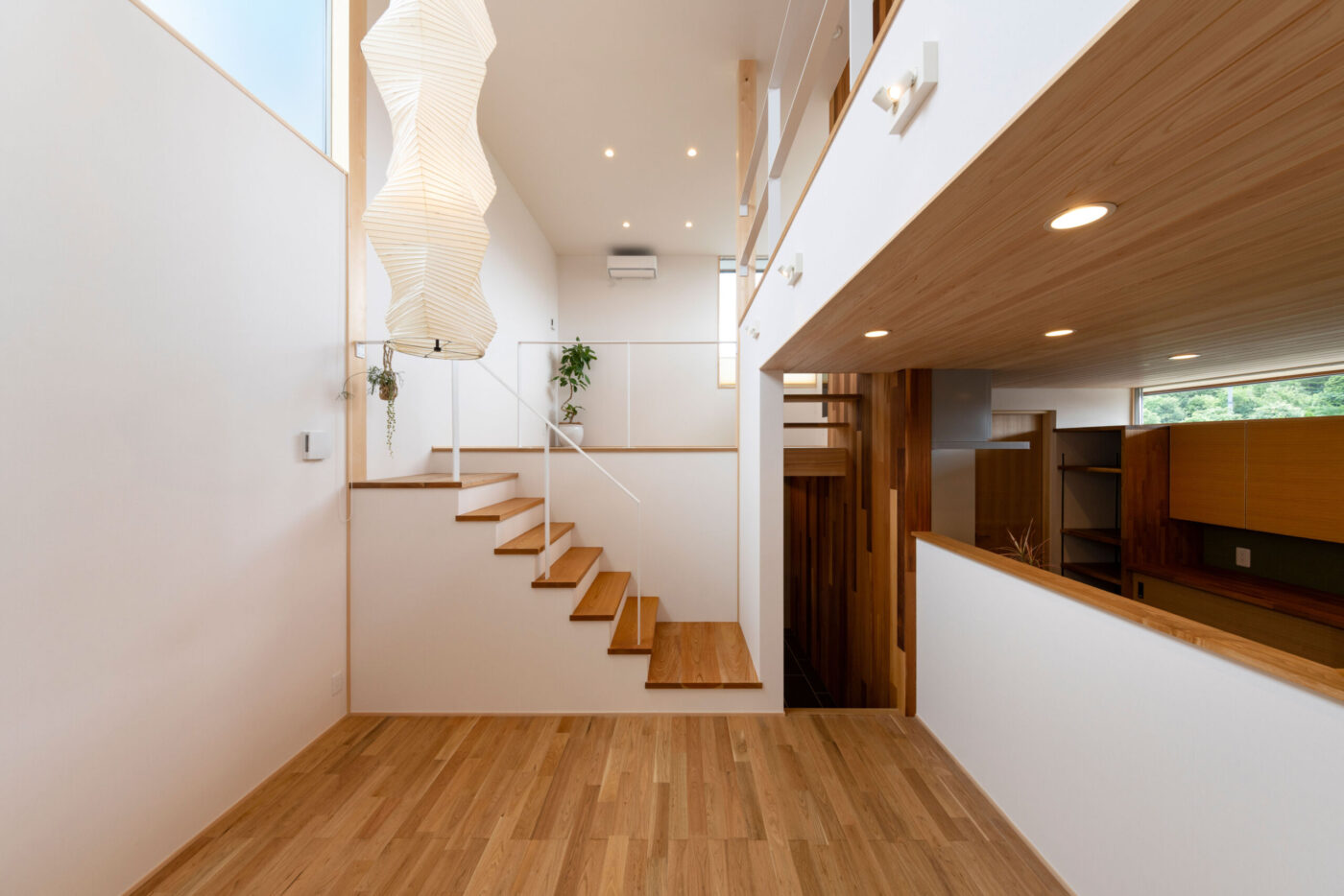 中二階の高さを1階にできる限り近づけ、シームレスな空間を目指した。