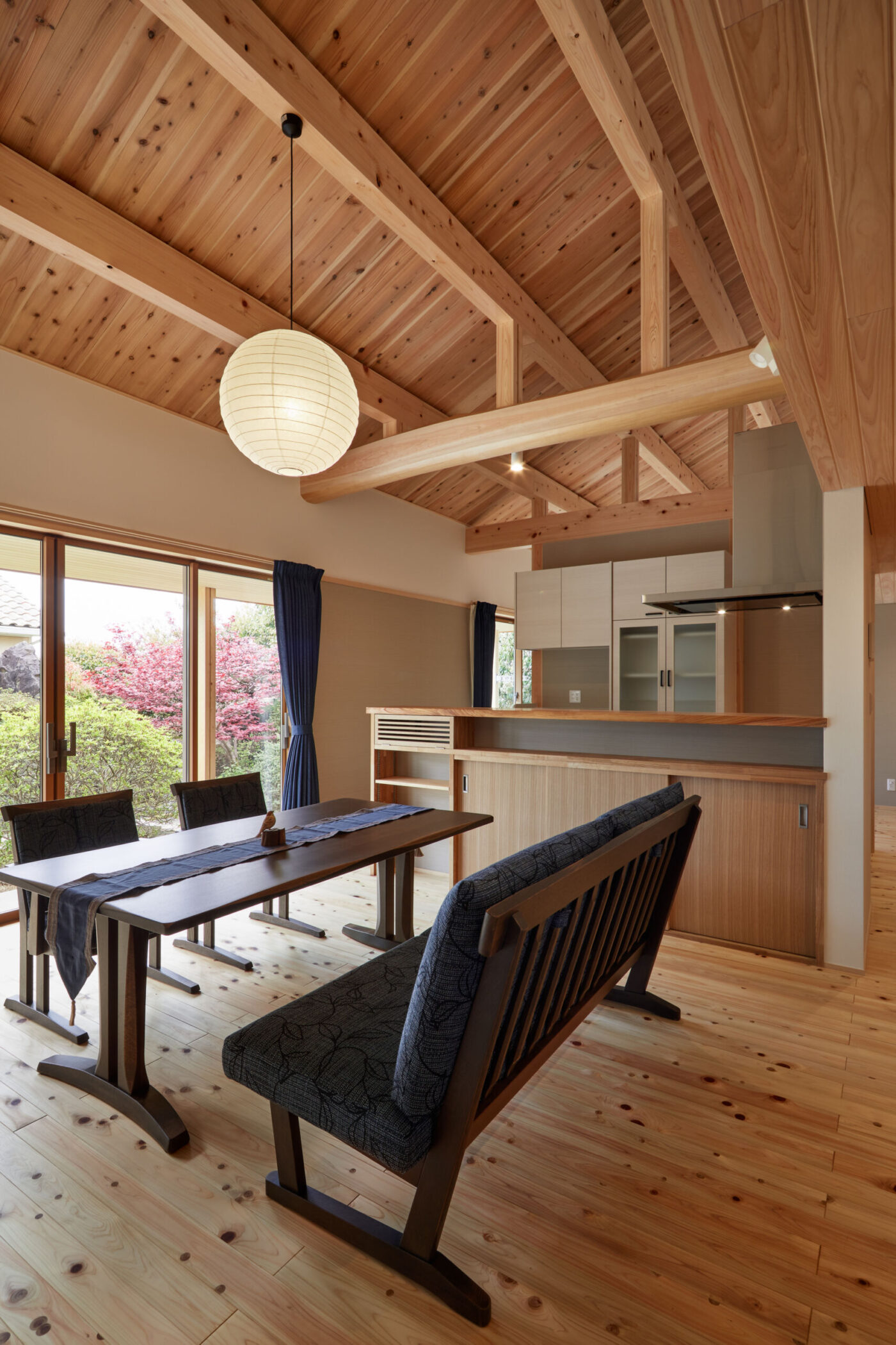 思い入れのあるご実家の建て替えであるため、建材、庭、借景などの活用できるものは再利用し、想い出を引き継いでいます。