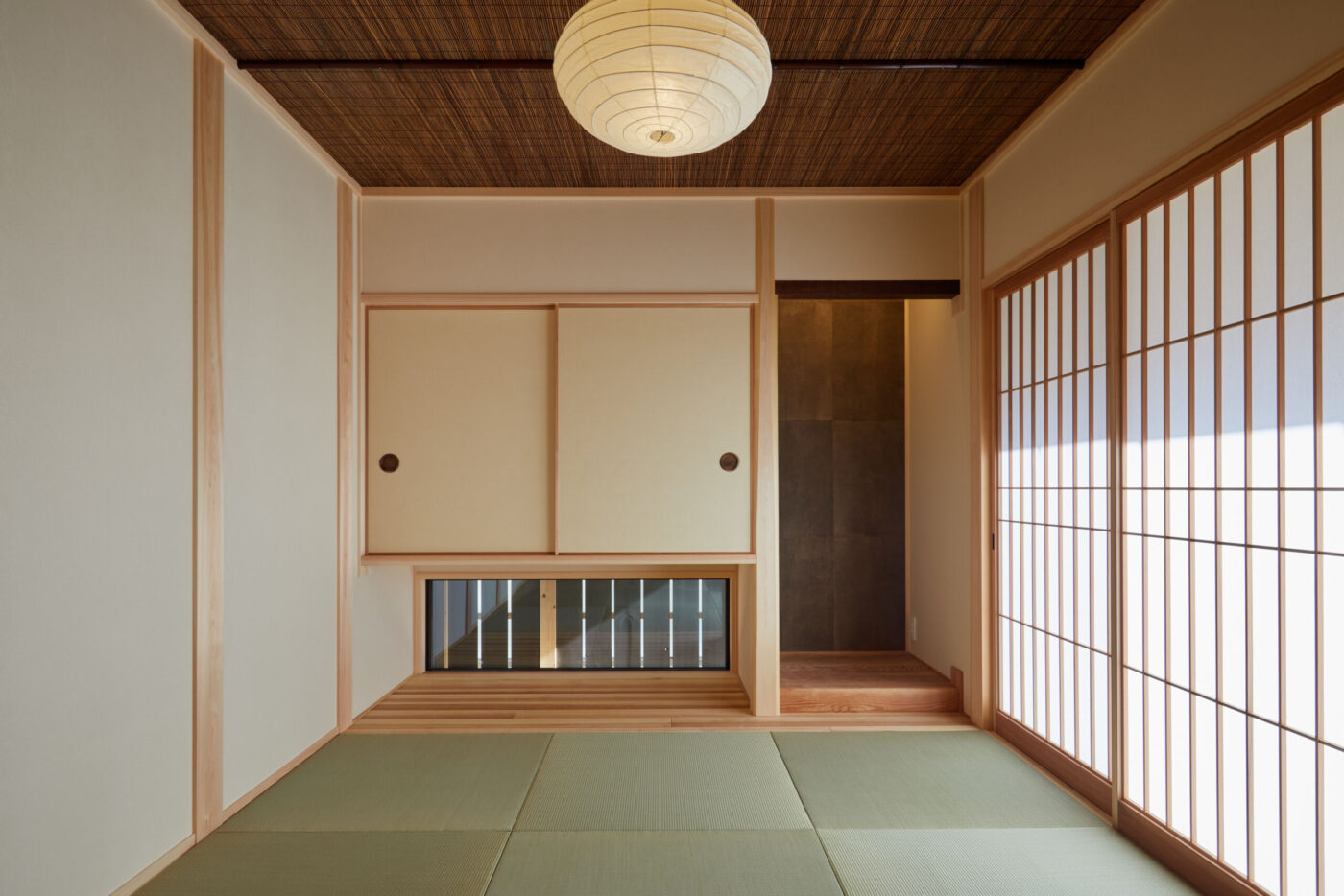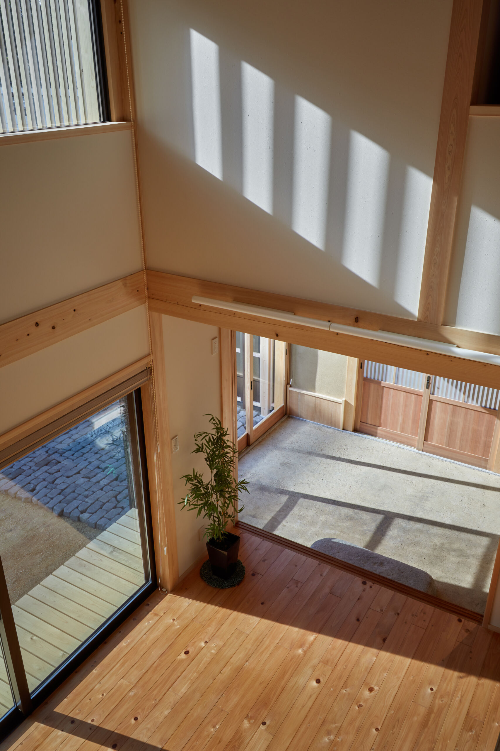 伝統的な雰囲気を醸す、大引天井の玄関土間。