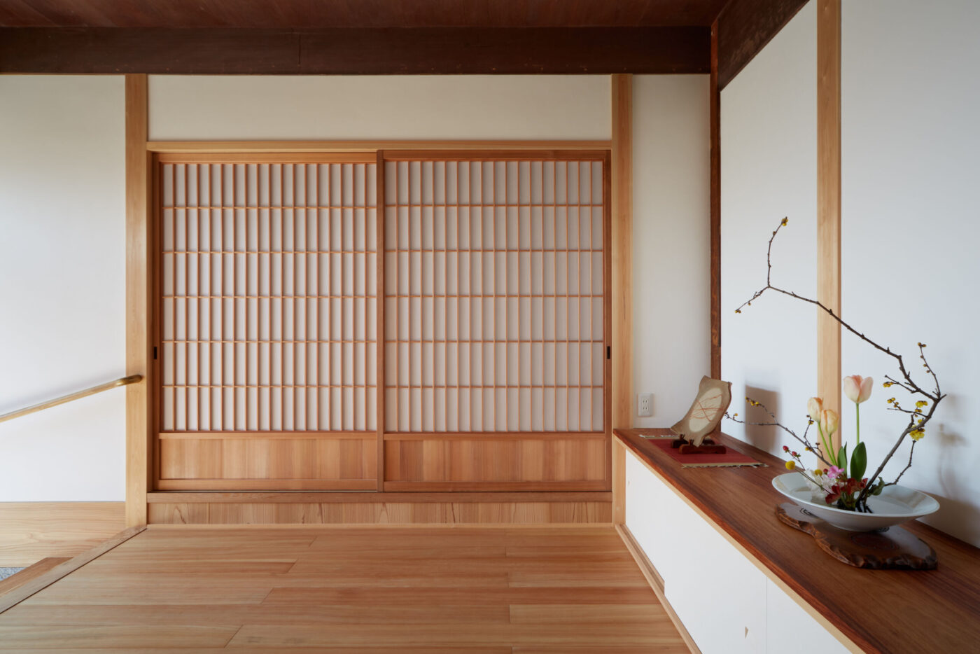 障子を開け放てば空間が一続きになり、より広がりをもたらす。