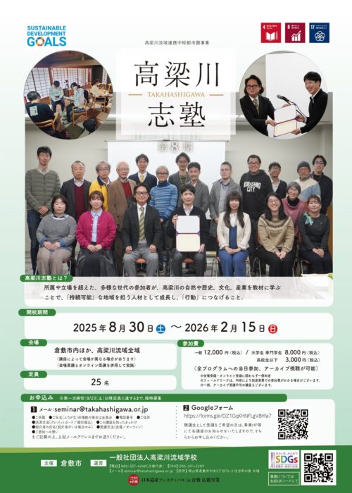 【高梁川志塾 申込フォーム】 https://docs.google.com/forms/d/e/1FAIpQLSd0kT7hOcUvnewabMU8kOCCmJyaOVzND_FdlGDq195jjCCMXA/viewform?usp=send_formプレビュー