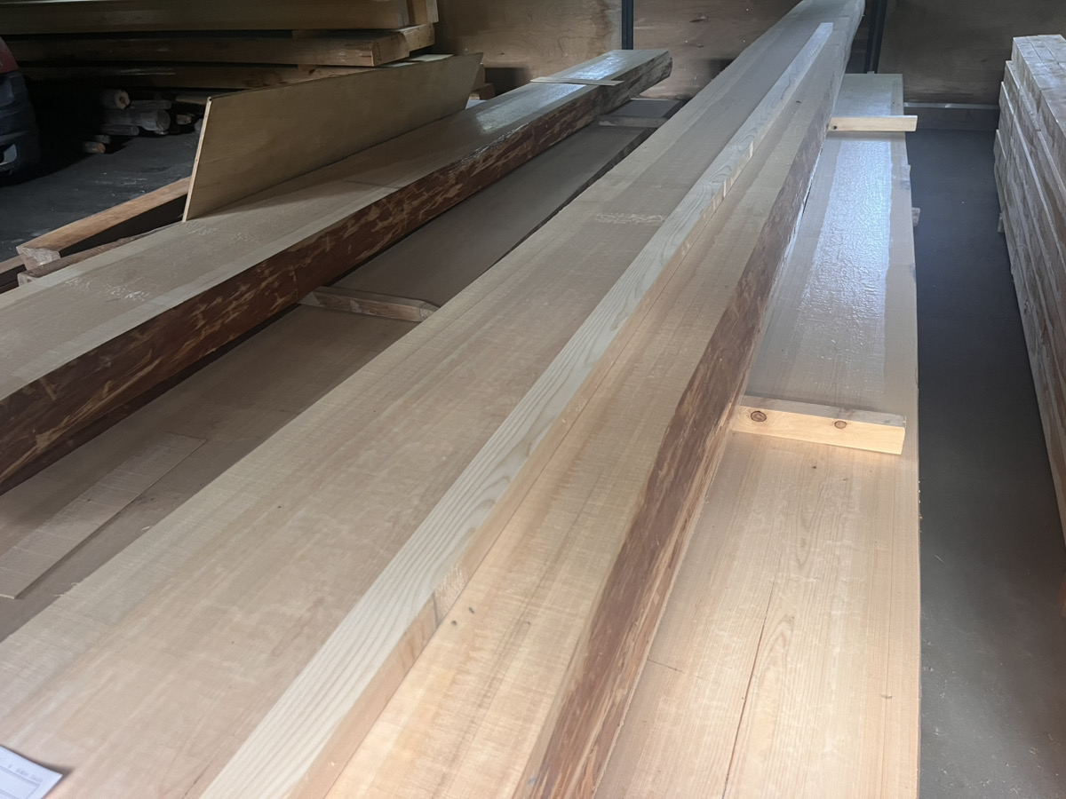 古材ギャラリーには、歴史を感じる梁、味わい深い板材などが揃っており、実際にご覧いただきながら理想の空間づくりのご相談が可能です。 また、ギャラリーだけでなく、弊社倉庫にも多種多様な銘木をストックしております。