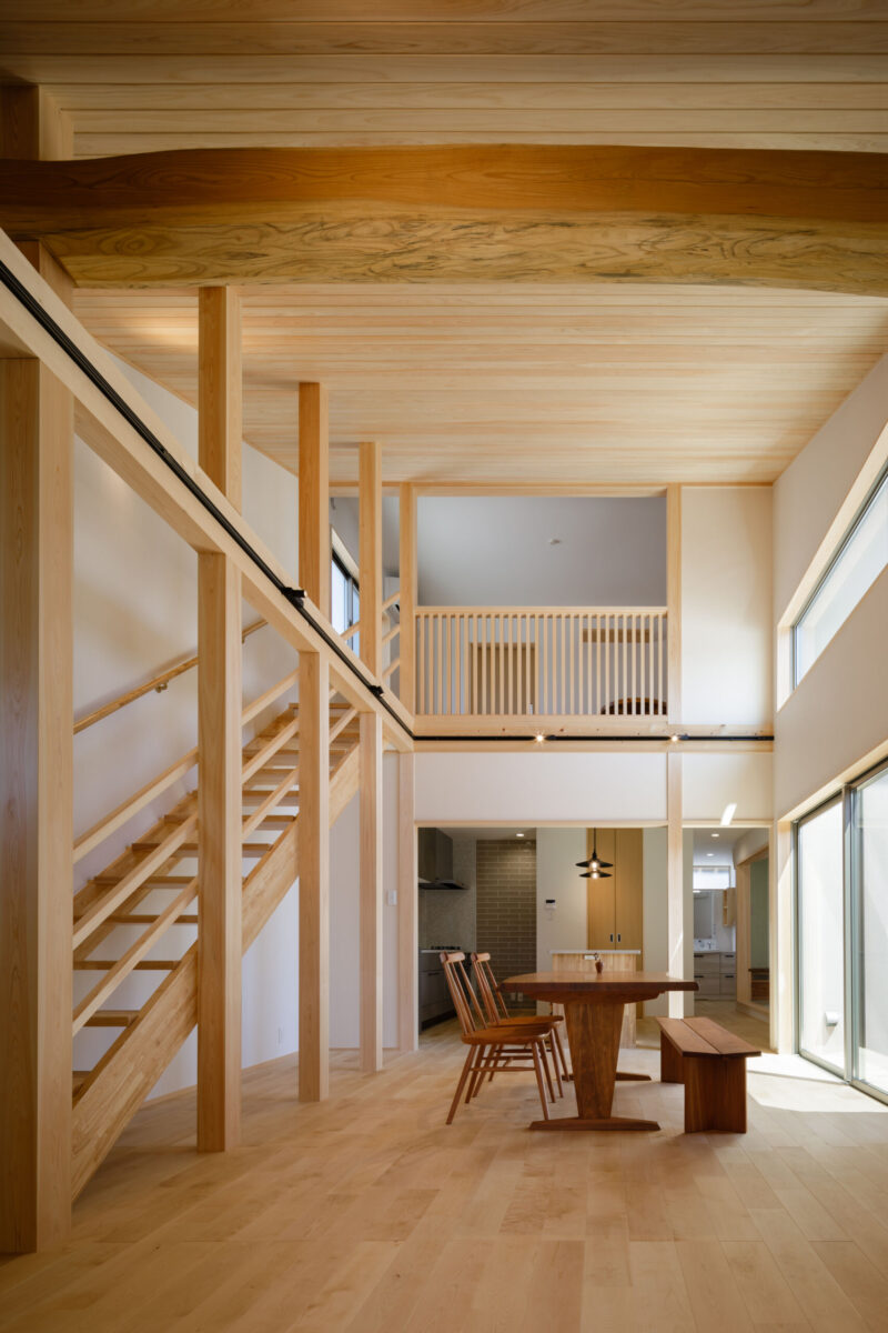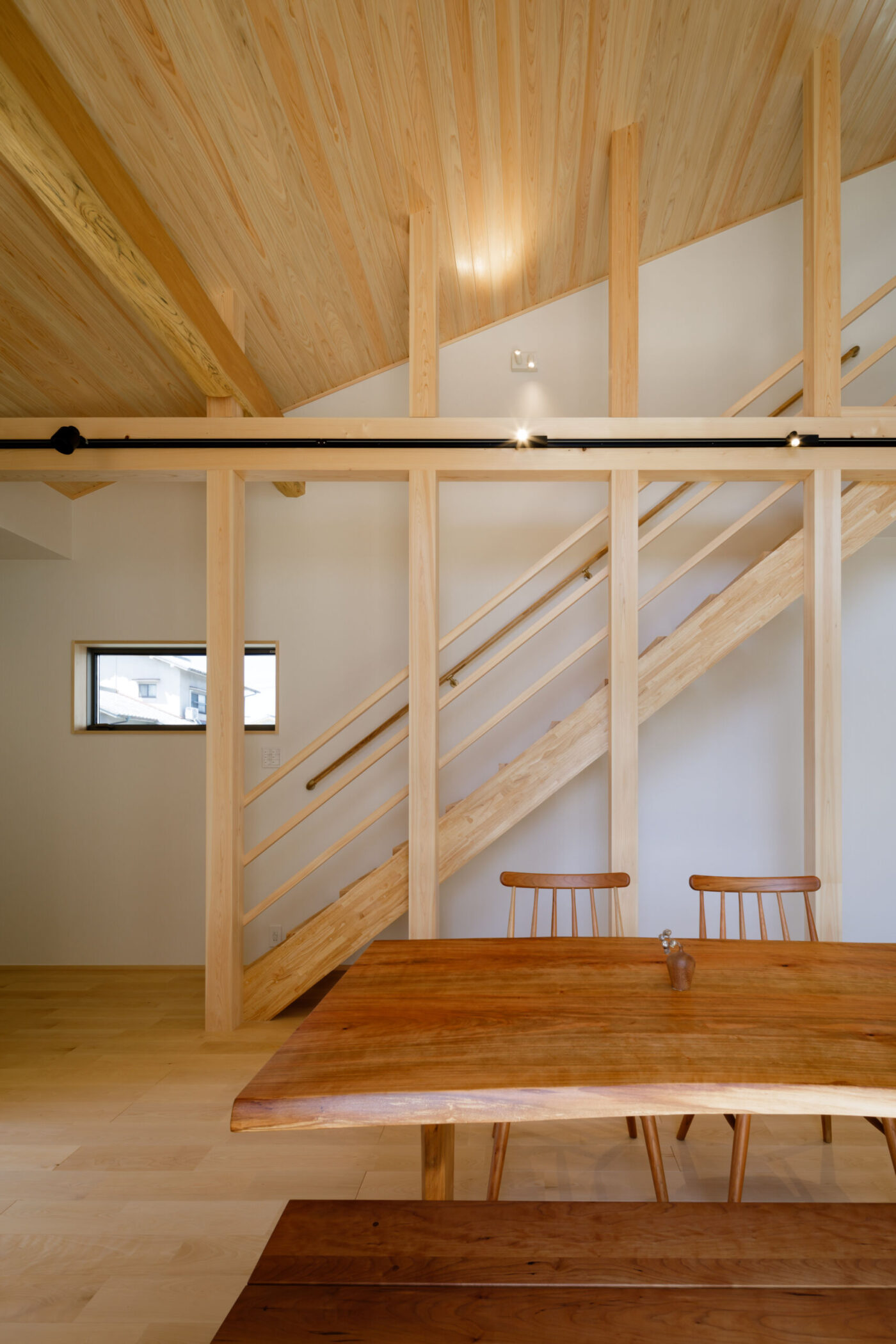 弊社が住宅として建築したお家がランチカフェとしても活躍しているということで、それはそれは興味があります。そこで施主様と一緒にご自宅兼お店へと伺ってきました。その名は「Tsunagu」さんです。お家の中へお邪魔してみての第一印象は、アットホームな雰囲気でお店らしくなく友人の家にお邪魔する感じで貸し切り特別感を味わえる感覚でした。実際に住まわれているお家をリフォームすることなくそのままランチのお店として、営業できるってすんばらしいですよね。普段からキレイにされている証拠です。そして何より、自然な無垢の木をふんだんに活用し、シンプルな勾配天井ヒノキの板張りに丸太とのコラボレーション、中庭を眺める和室もあり特別感、良いお店ですね。
