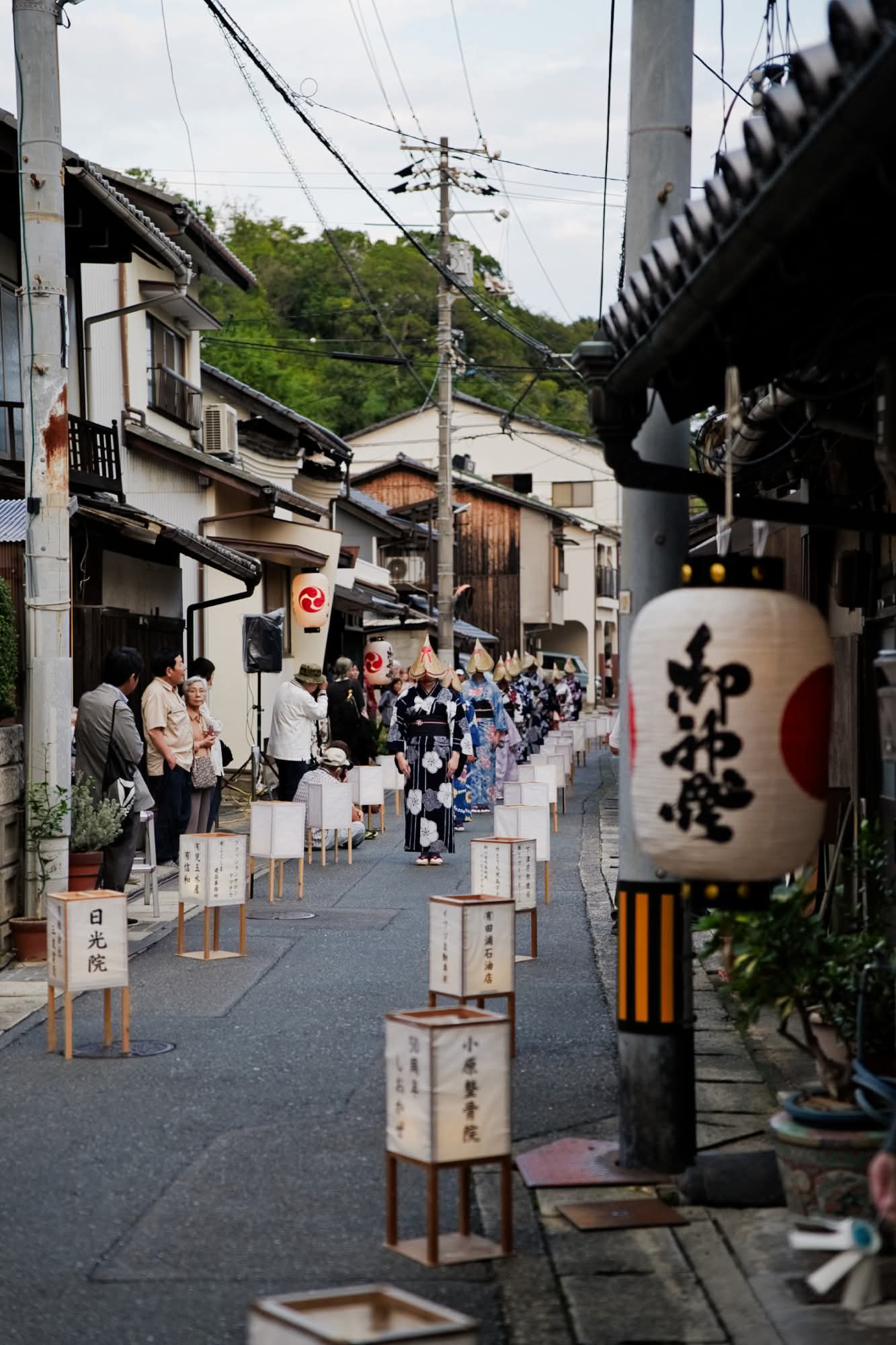 約1年をかけて下津井節の踊りの練習を重ねた踊り。行灯と提灯の灯りに包まれた町並みは幻想的な美しさでした!