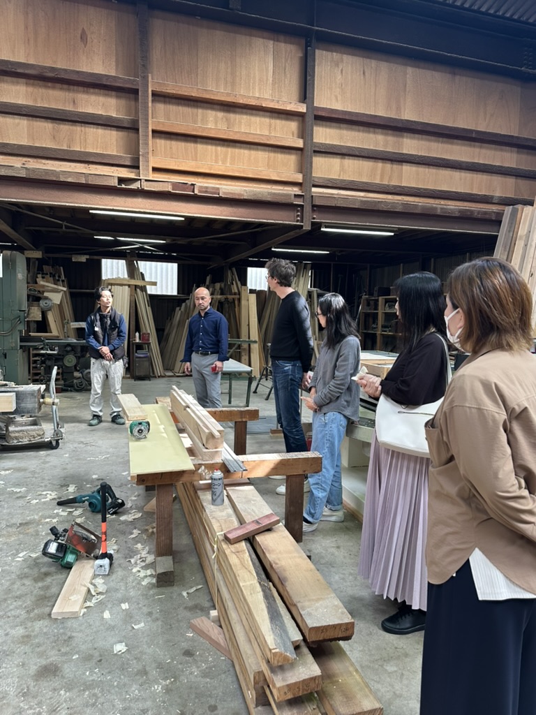 工場では、実際に職人が古材を加工している現場を見学いただきました。