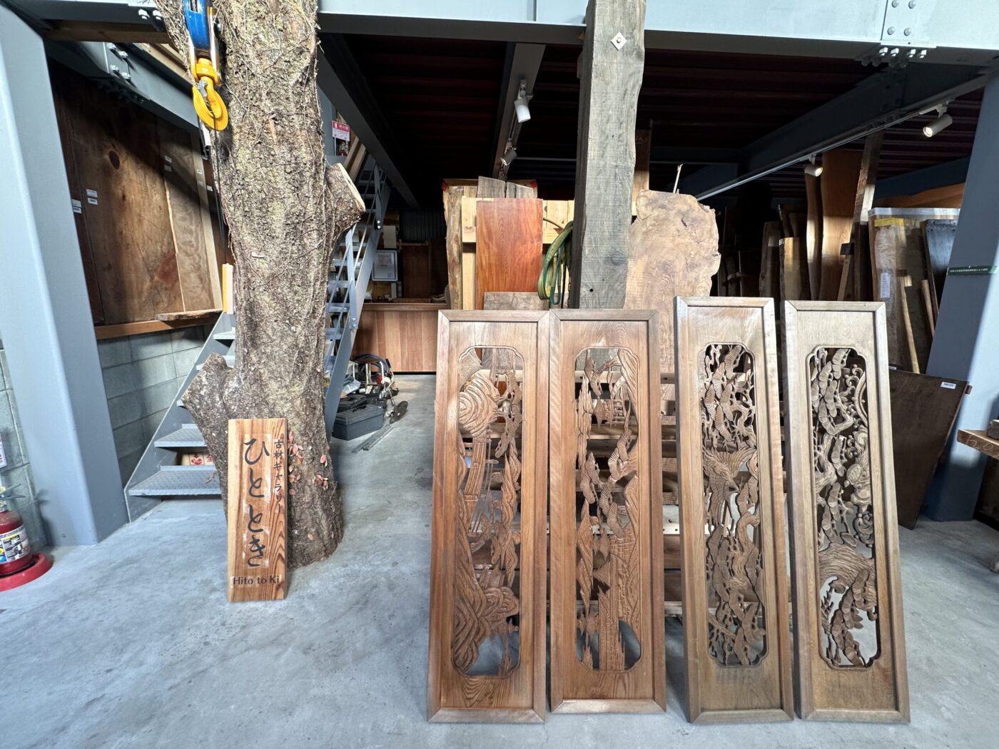 古民家の解体後、倉庫に保管されていた欄間を、お施主様の想いを受け取る形で当社が引き取りました。写真の欄間は、透かし彫りが美しく、鳥や木々、山並みといった日本の風景が緻密に描かれています。欄間は単なる装飾ではなく、空間に風を通し、光を柔らかく分ける役割を持つ建具。そこには職人がノミ一本で木と向き合った時間と、家族がその下で過ごしてきた暮らしの記憶が刻まれています。