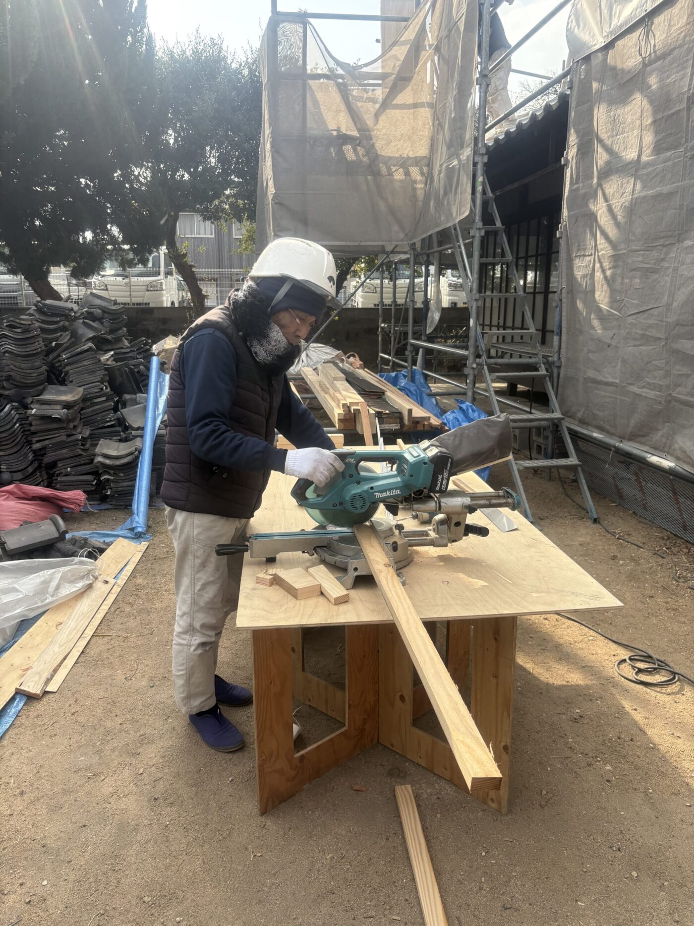 築100年以上の古民家を工事させて頂いております。その工事の棟梁が彼。ベテラン大工さんです