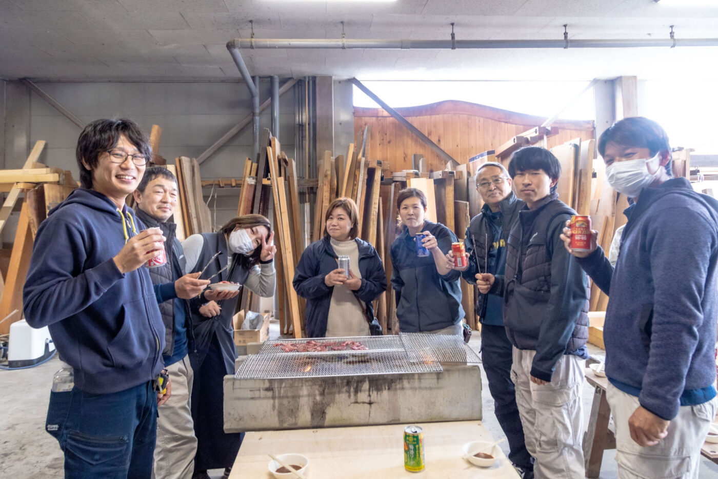 工場の屋根下に集まり立場を越えてみんなが笑顔で交流していて、なんば建築工房らしい温かさをあらためて感じる一日でした!