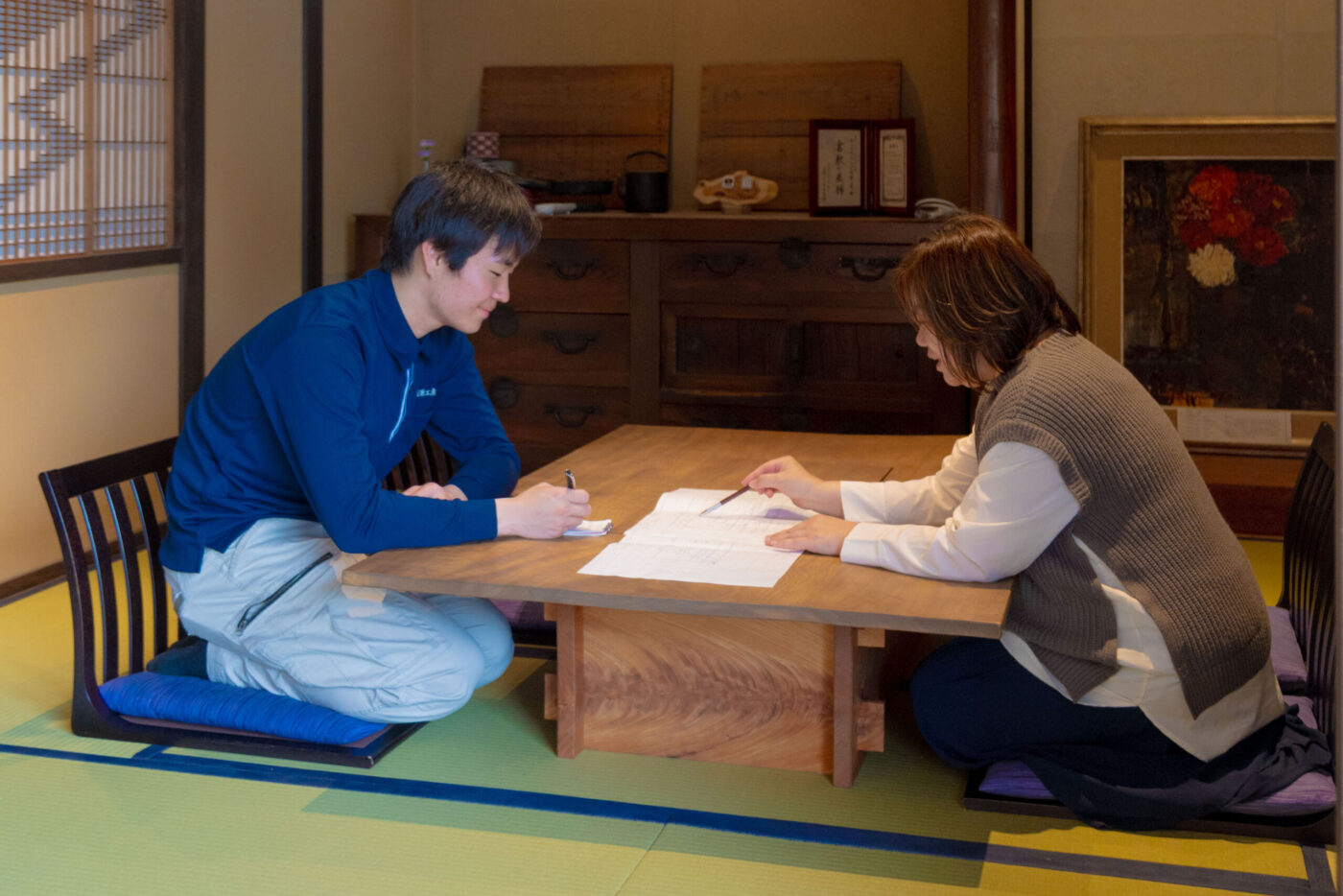 3歳のお子様は追いかけられるのがお好きなようで1時間30分程、広縁と応接間辺りをくるくる走り回って追いかけっこをしていました。子供の体力には驚かされるばかりです。僕が汗だくになっているのに子供は飽きずにまだまだ走りたがっていて、僕が一日でこんなに疲れた子供たちを毎日お世話をしている親御さんの凄さを身にしみて感じました。