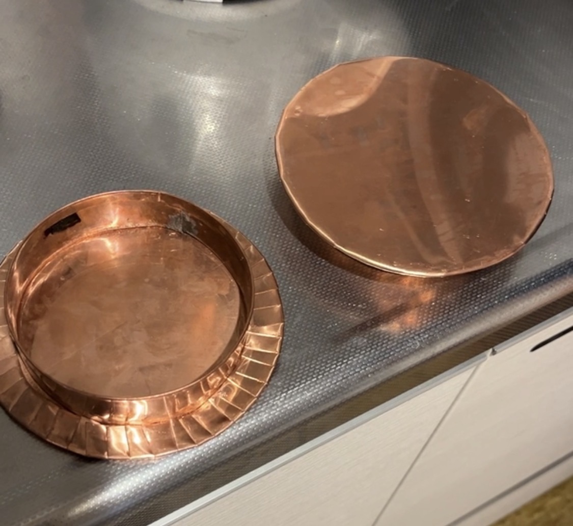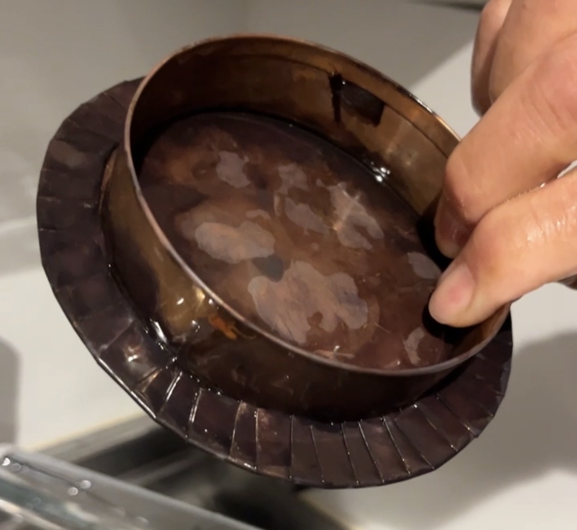 銅は硫化させることによって、短時間で褐色〜黒褐色に変色し、アンティークな風合いになります。
