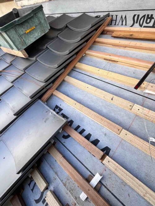倉敷で進行中の現場で施工しております。現在の簡略瓦と違い平瓦と丸瓦を組み合わせて葺くようになるので瓦…続きを読む