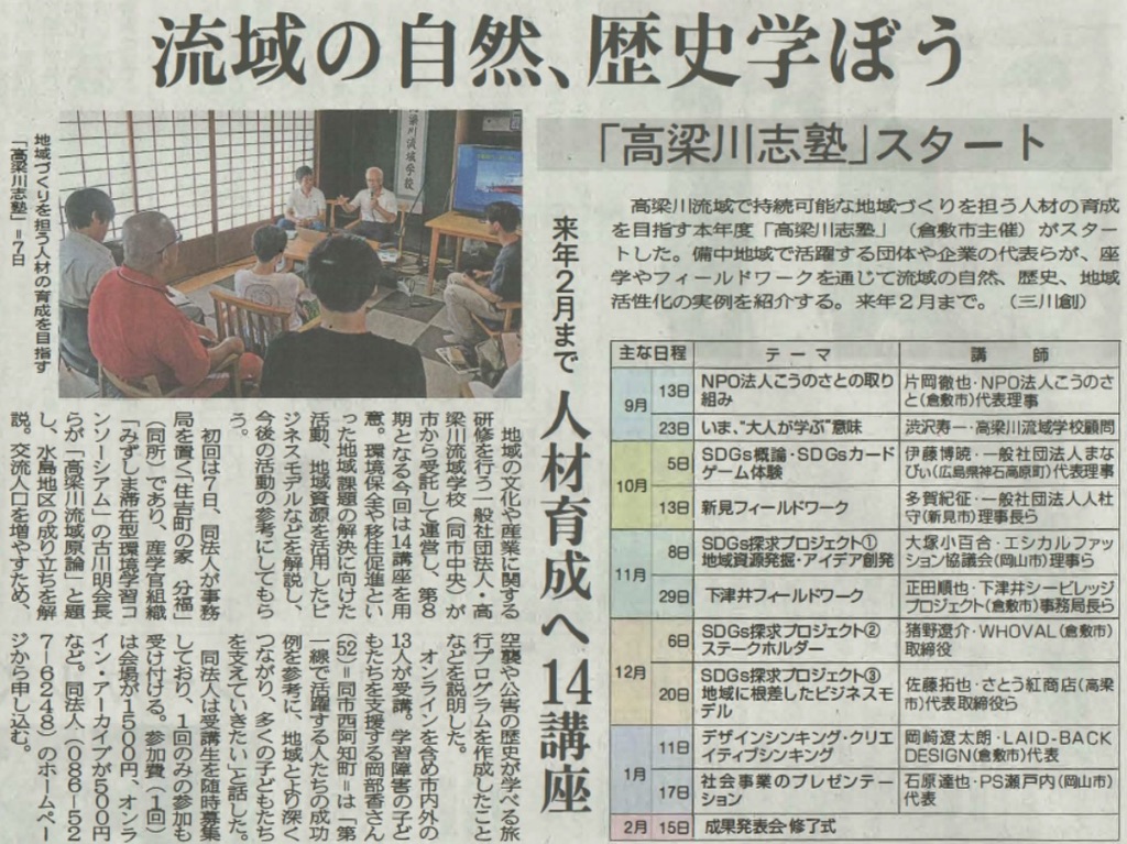 本日、高梁川志塾にて「下津井の歴史」と「持続可能なまちづくり」をテーマに講演の機会をいただきました。